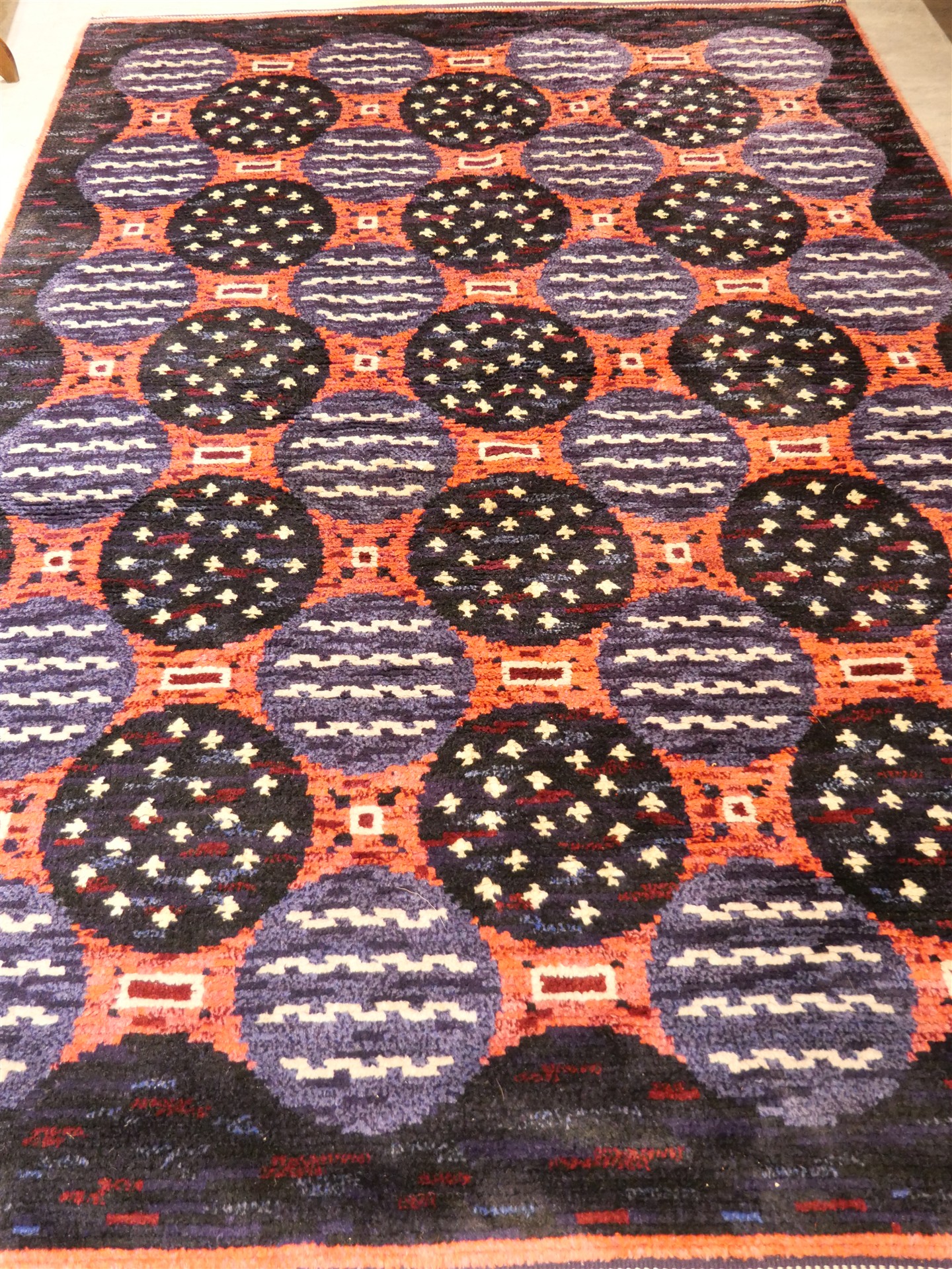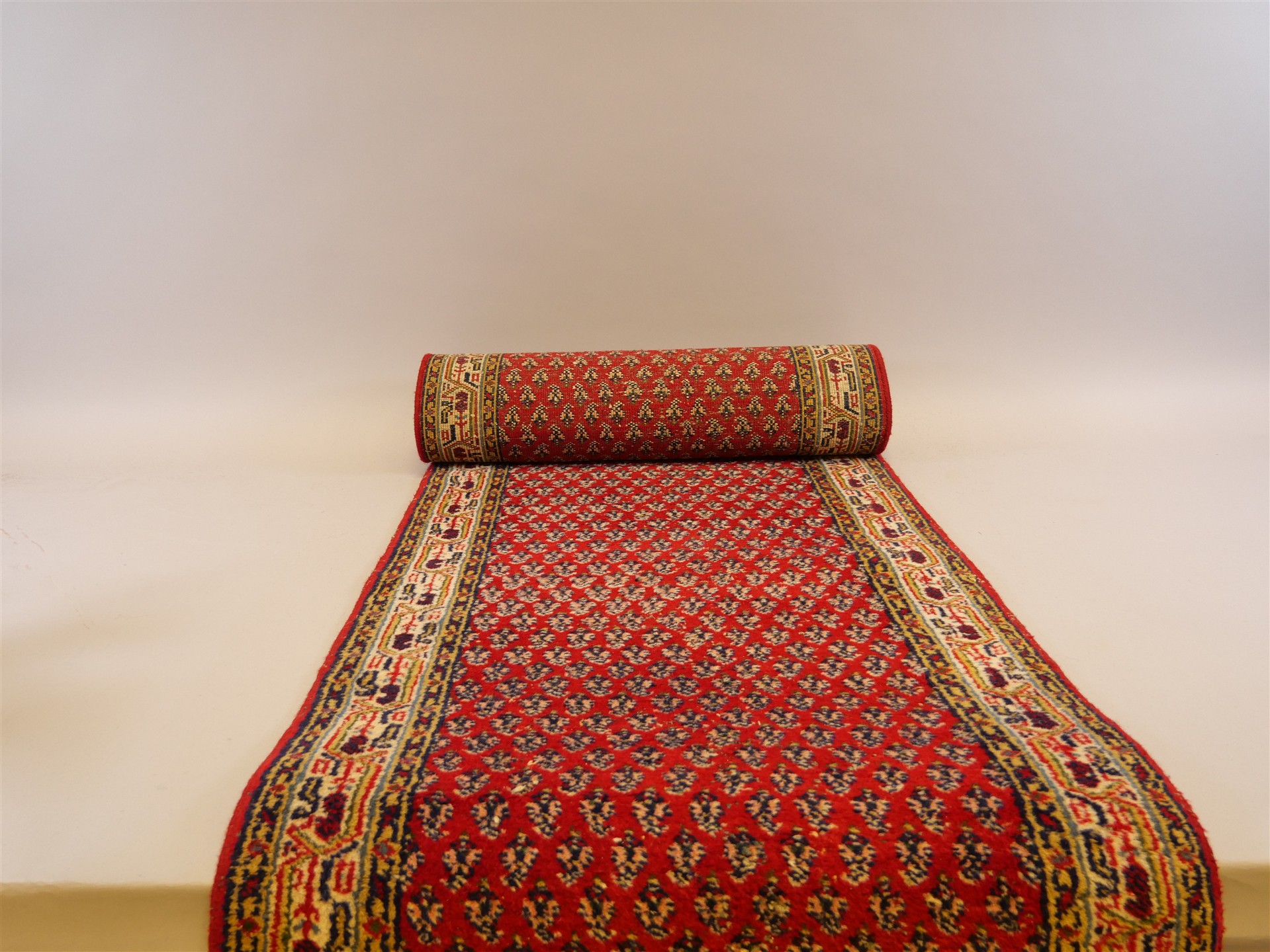 009. GALLERIMATTA, handknuten. Något slitna fransar. 270 x 74 cm.