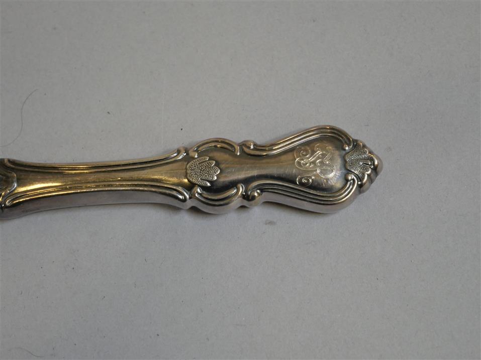 552. BESTICKUPPSÄTTNING. 92 delar. Silver. Bruttovikt 3.524 gram. Knivar 12+12 st, Gafflar 12+12 st, Skedar 12 st, Soppslev 1 st, Ostkniv 1 st, Kompottsked 1 st, såsslev 1 st, Bakelsespade 1 st, Plockgafflar 6+3+3 st, Salladsbestick. Kaffeskedar 12 st