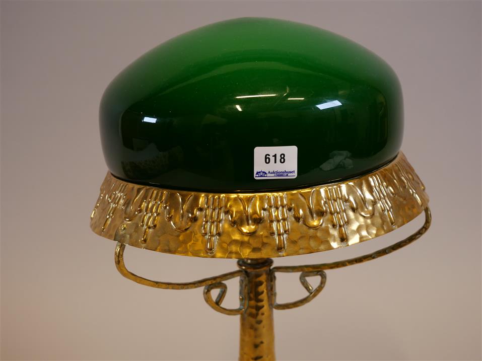 618. BORDSLAMPA, glaskupa med mässingsfot. H. 40 cm