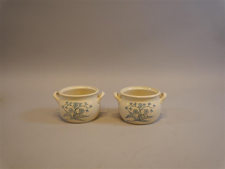 294. GUSTAVSBERG. Blå/Vita krukor 2 st, Varav en med insidesnagg. H. 11 cm Diam 16