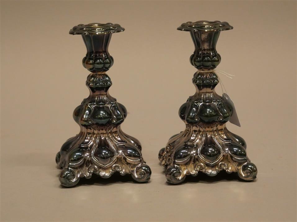 189. LJUSSTAKAR, 1 par, rokokostil. Nysilver. H. 18 cm.
