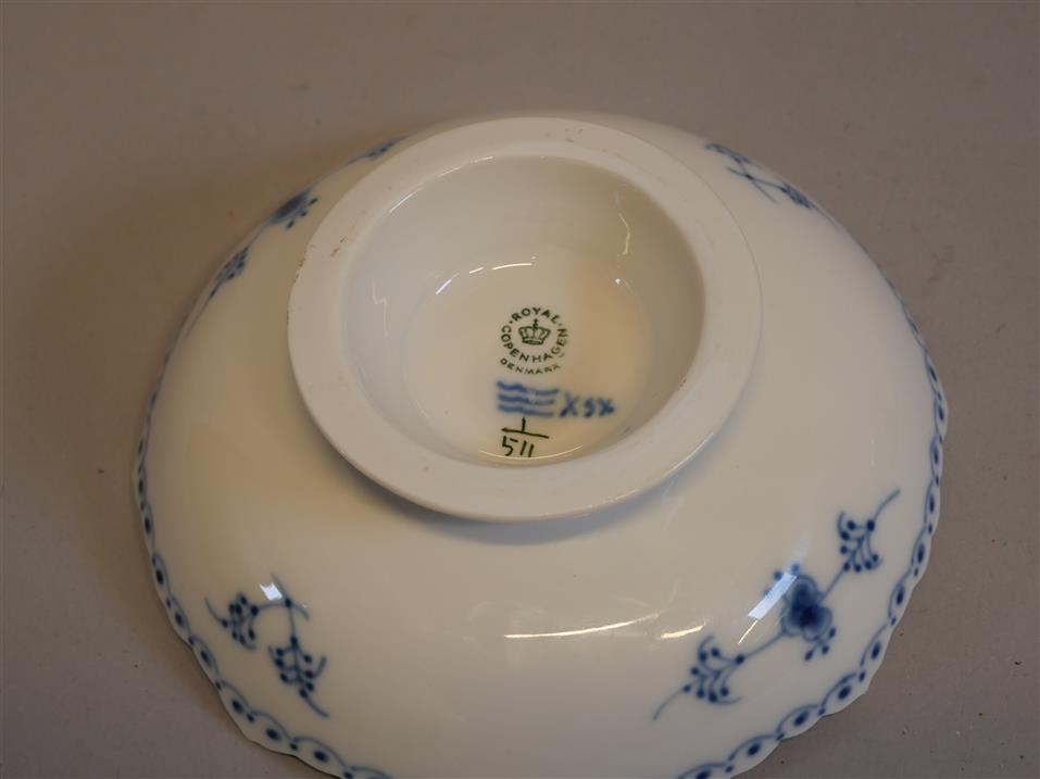 626. ROYAL COPENHAGEN. Sockerskål (605), skål på fot (511). Andra sortering. "Musselmalet", halvblond.