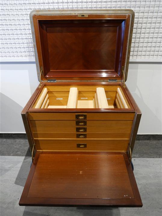 452. SCHATULLSKÅP. Barockstil. Senare bemålat. 1900-talets mitt. H. 87 cm B. 74 cm Djup. 55 cm