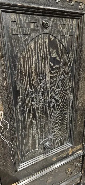 471. SKÅP. Sekelskiftet 1900. Mörkt betsad ek. H. 169 cm B. 90 cm Djup. 61 cm