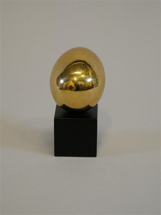 083. SKULPTUR. Ägg, mässing. H inkl sockel: 11 cm