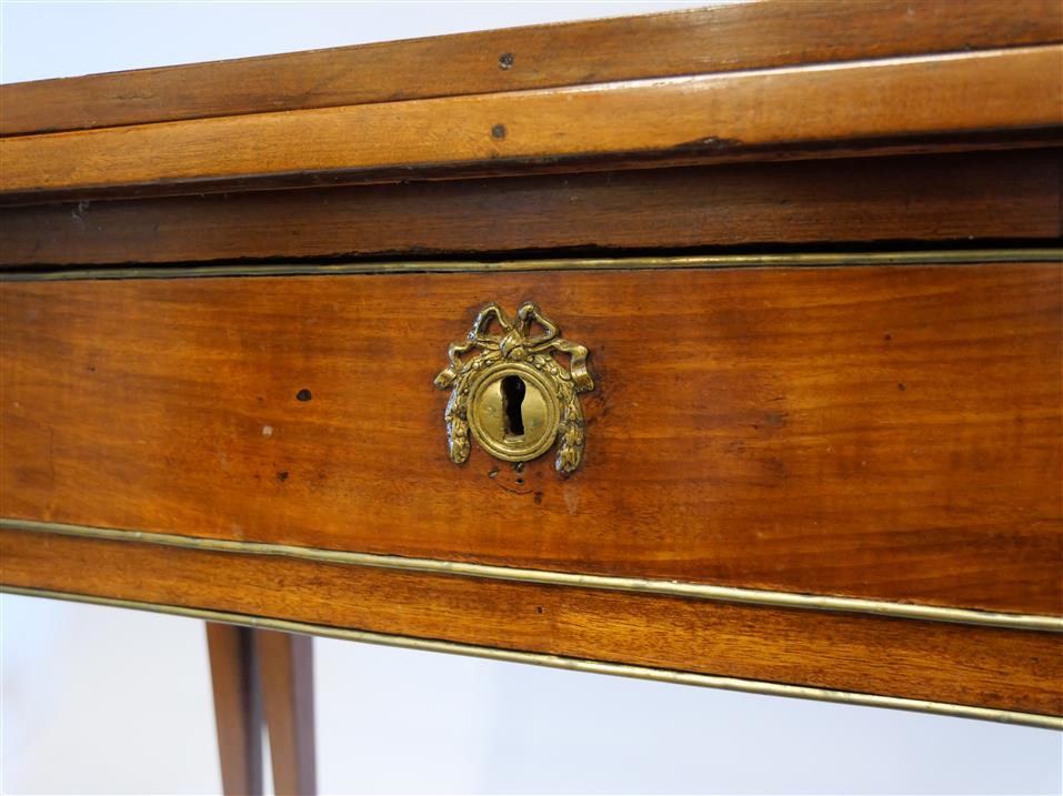 682. SPELBORD. 1800-tal, sengustavianskt, mässingsdetaljer, ljushållare och låsbricka utbytt. H. 78 cm B. 86.5 cm L. 85 cm. Med fanérskador.
