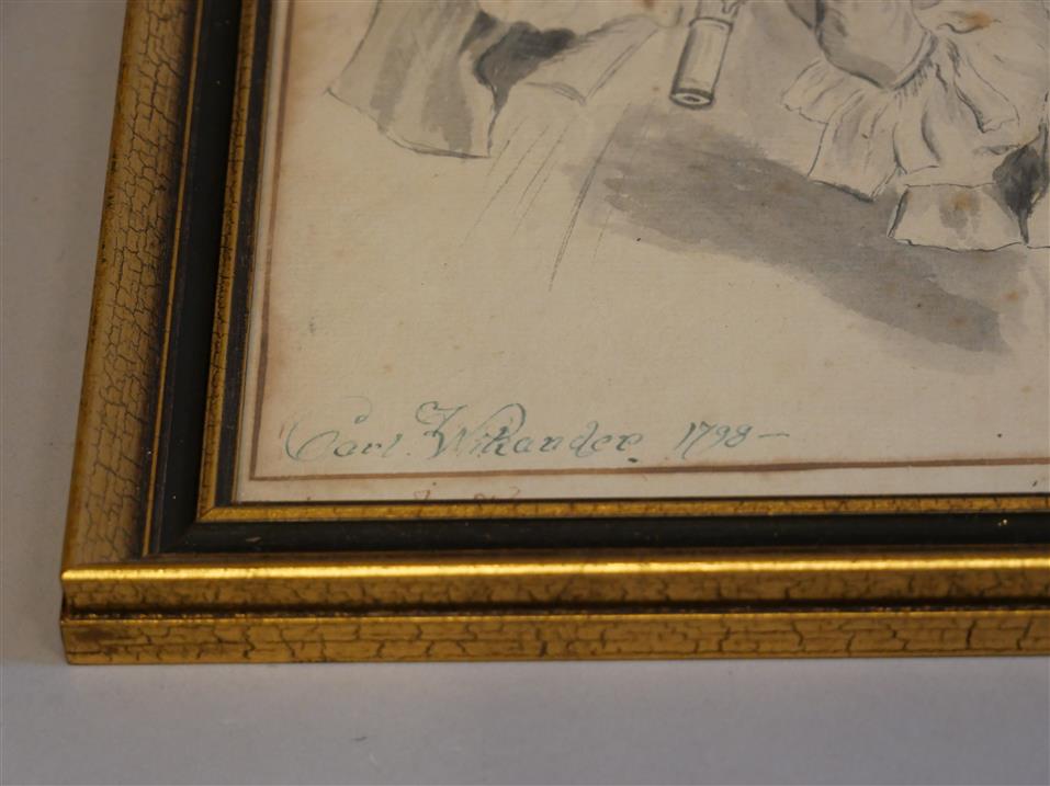 273. TECKNING. Carl Wikander 1798. Bladet med fuktfläckar. Tavlans mått: 34 x 25,5 cm.