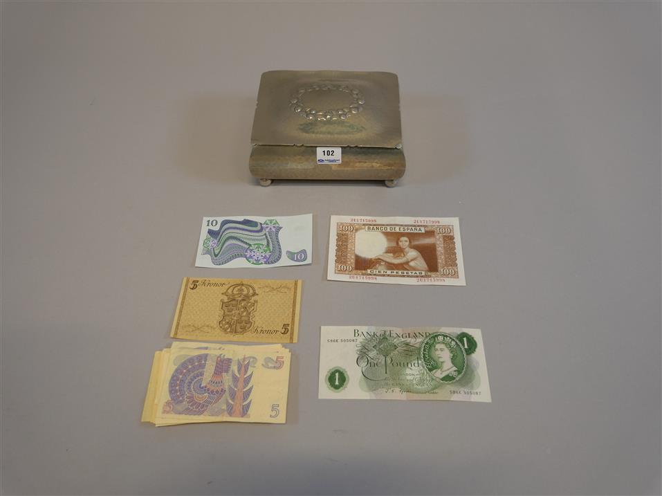102. TENNSKRIN MED SVENSKA OCH UTLÄNDSKA SEDLAR