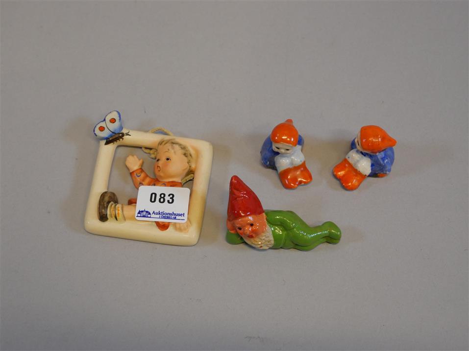083. VÄGGATVLA Goebel, MJ Hummel. Mått: 5.5x5.5 cm och Tomtar 2+1 st