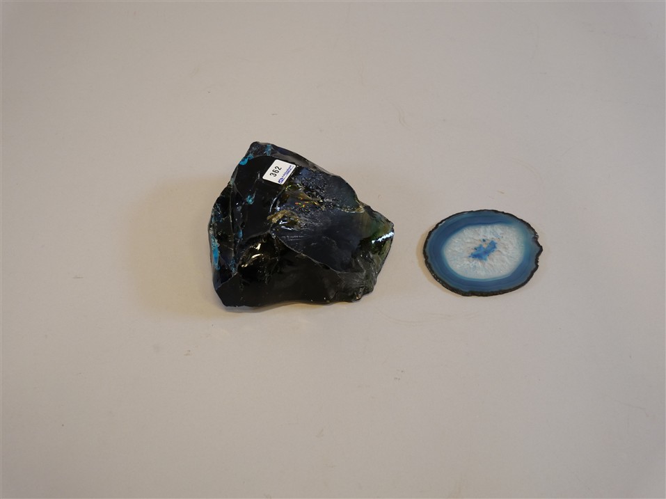362. AGATSKIVA & GLASBLOCK. L 11 x 9 resp 6,5 x 14,5 cm.