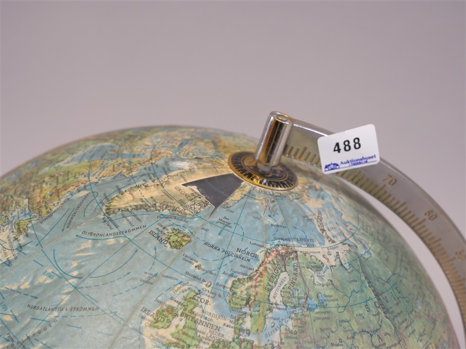 488. JORDGLOB med belysning, del av kartan borta. H 38 cm.