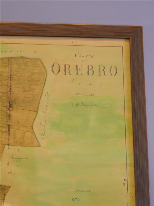 132. INRAMAD KARTA ÖVER ÖREBRO. Tavlans mått: 103 x 39 cm.