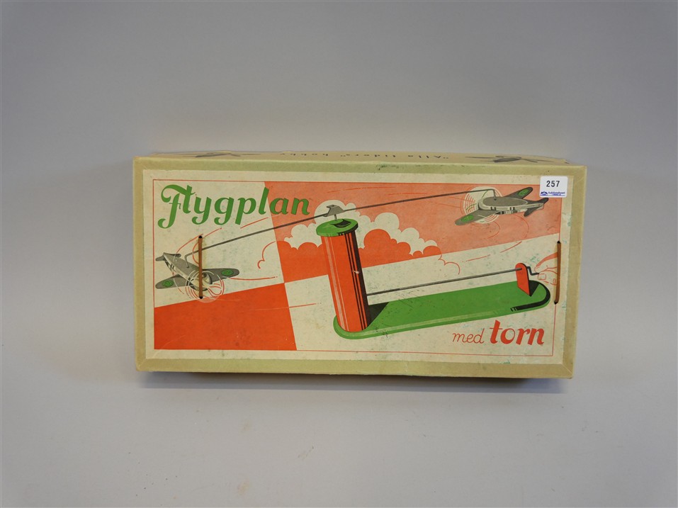 257. FLYGPLAN med torn, originalkartong. 1900-talets mitt. H 21 cm. Diam 86 cm.