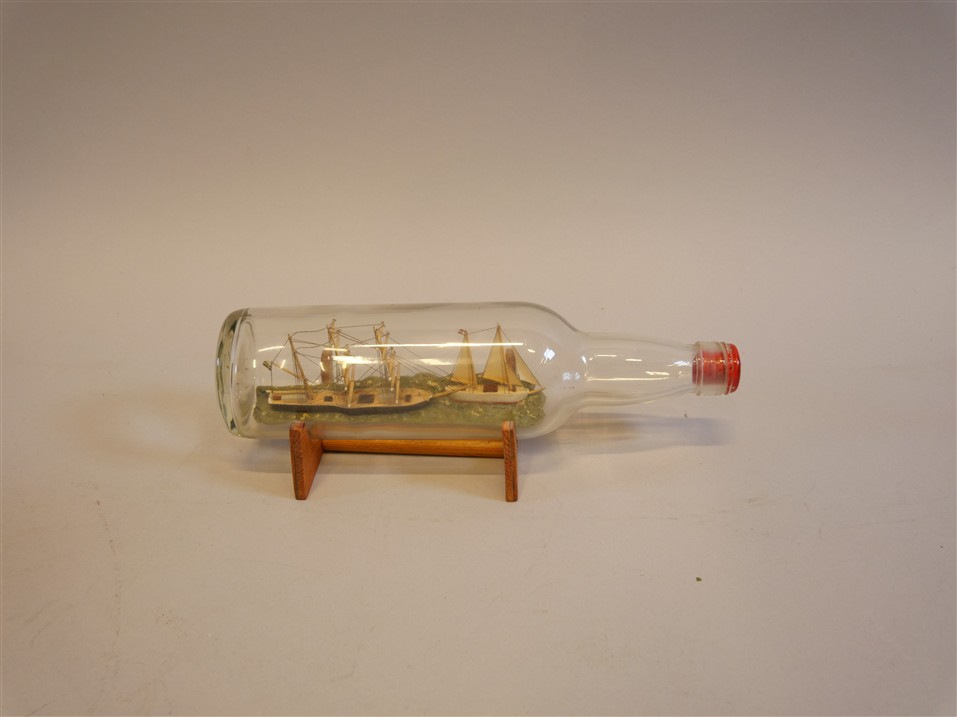 293. LJUSSTAKE, flaskskepp, modellskepp.