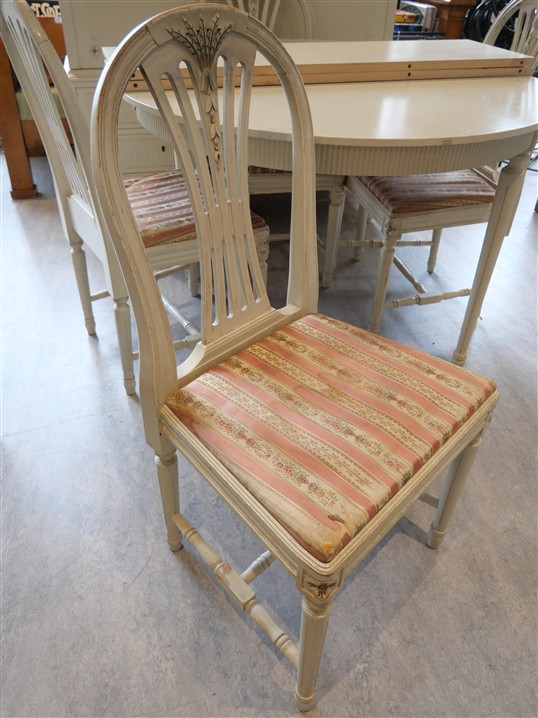 403. MATBORD med 2 iläggsskivor, 4 stolar. Modell Axet, Gust.stil. Färgsläpp