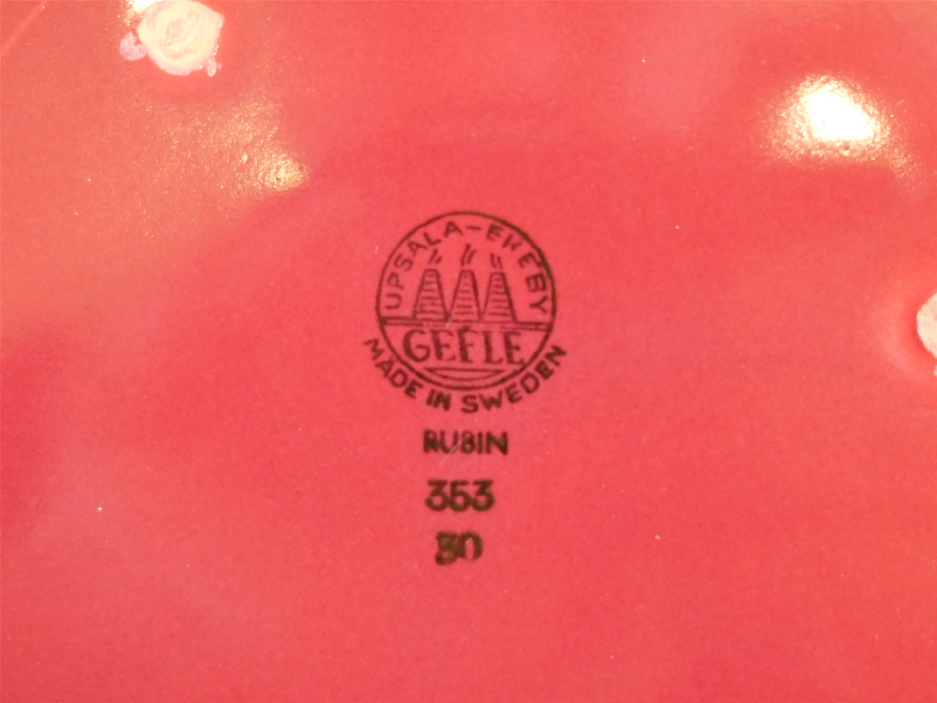 110. RÖD RUBIN, GEFLE. Fruktfat m 12 st fruktassietter.