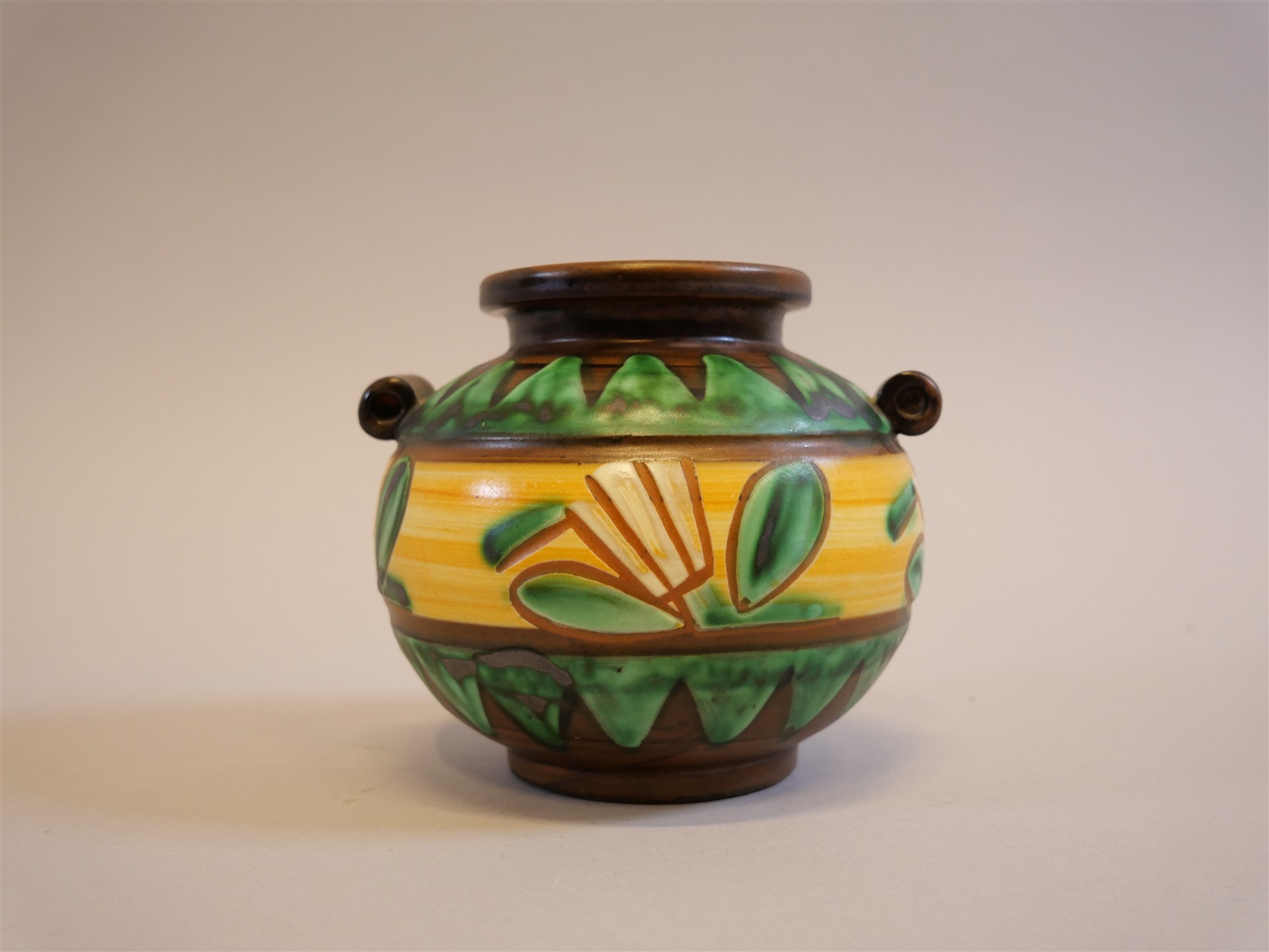 156. EKEBY. Vaser 2 st H 12, 14 cm. SKÅL H 9,5 cm.
