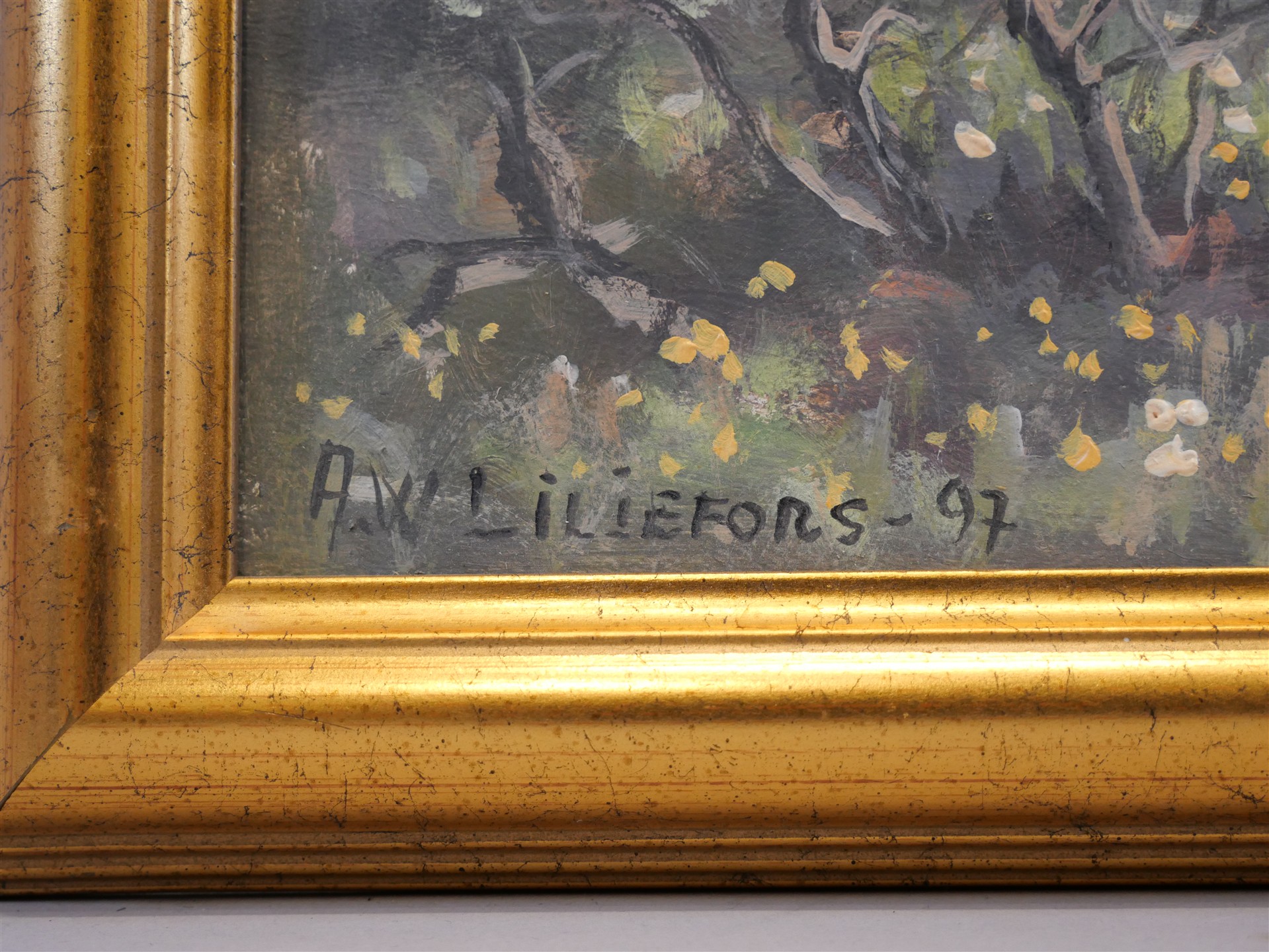 210. ASTRID WIDENBERG LILJEFORS. Oljemålning, sign AW Liljefors -97. Pannå 27 x 35 cm.