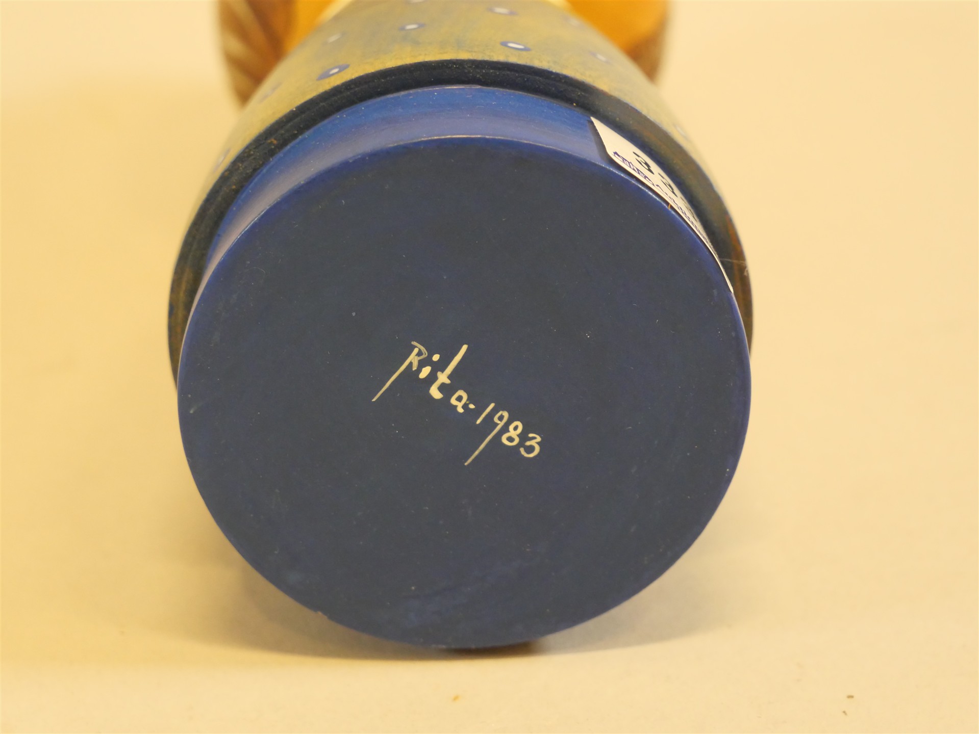 333. TRÄSKULPTUR, bemålad. Signerad Rita1983. H. 21,5 cm.