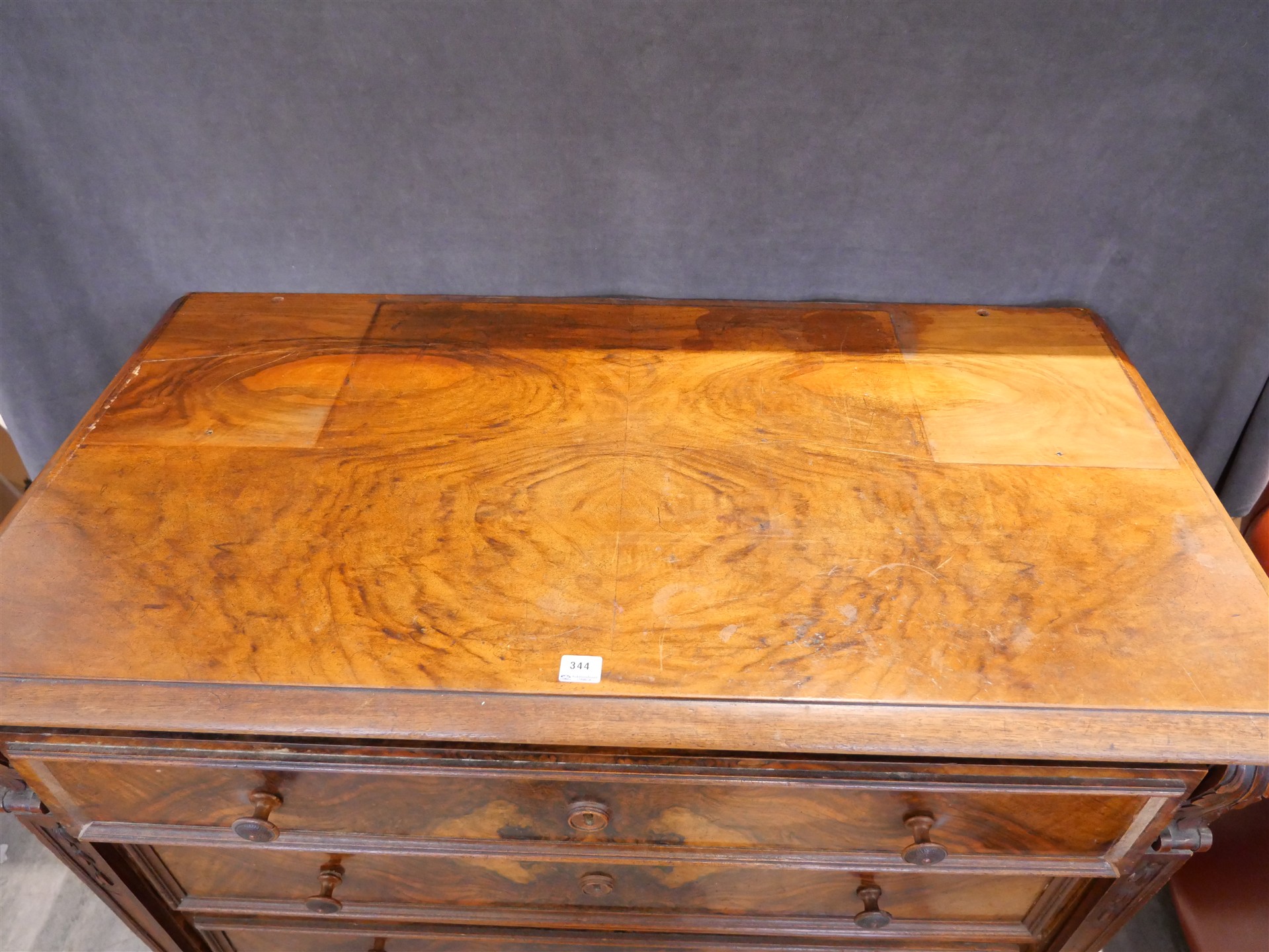 344. BYRÅ MED FYRA LÅDOR. Rotfaner, 1800-talets andra hälf. H. 90 cm B. 96 cm Dj. 50 cm