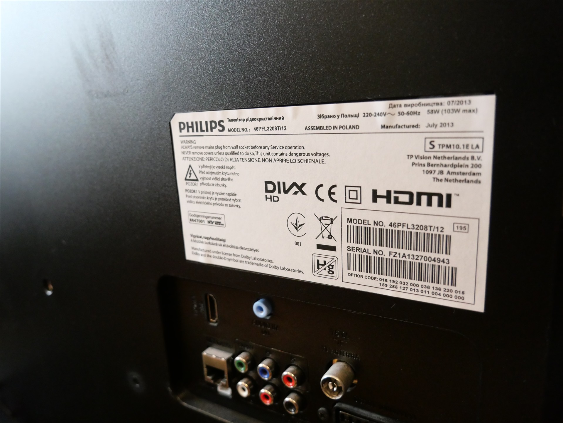 349. PHILIPS. TV. 46PLF3208T/12. Med fjärrkontroll