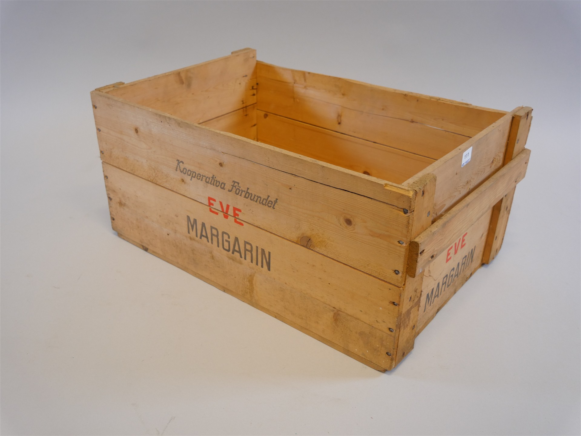 111. TRÄLÅDA, Margarin Eve, Kooperativa förbundet. H. 26 cm. L. 54,5 cm.B. 37 cm.