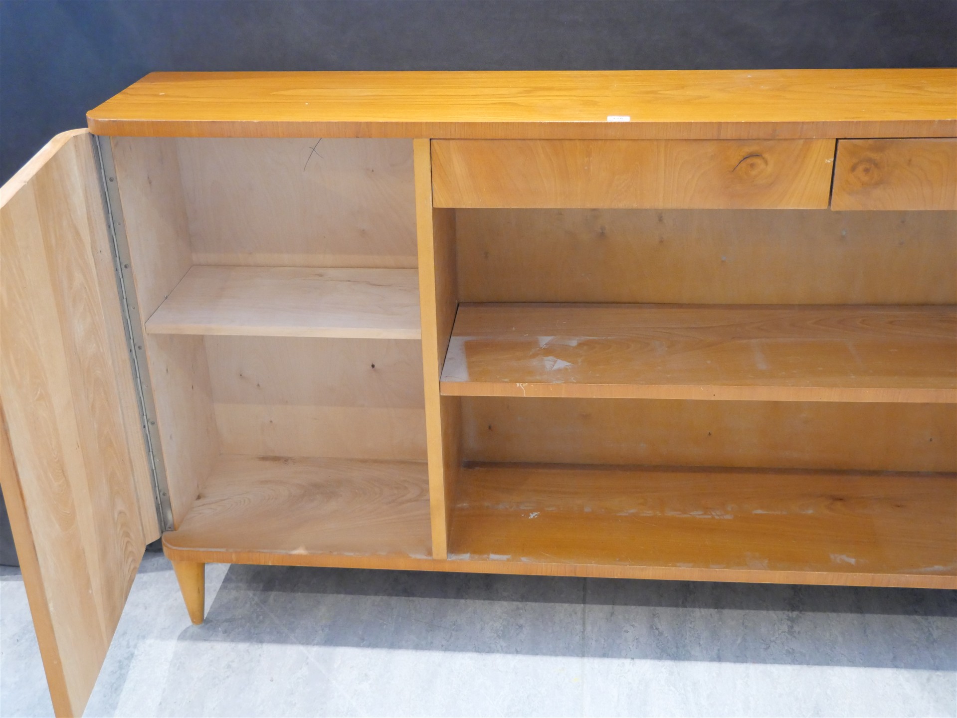 126. BOKHYLLA, björk 1930-tal. H 80,5 cm. L 140 cm. Dj 28 cm.