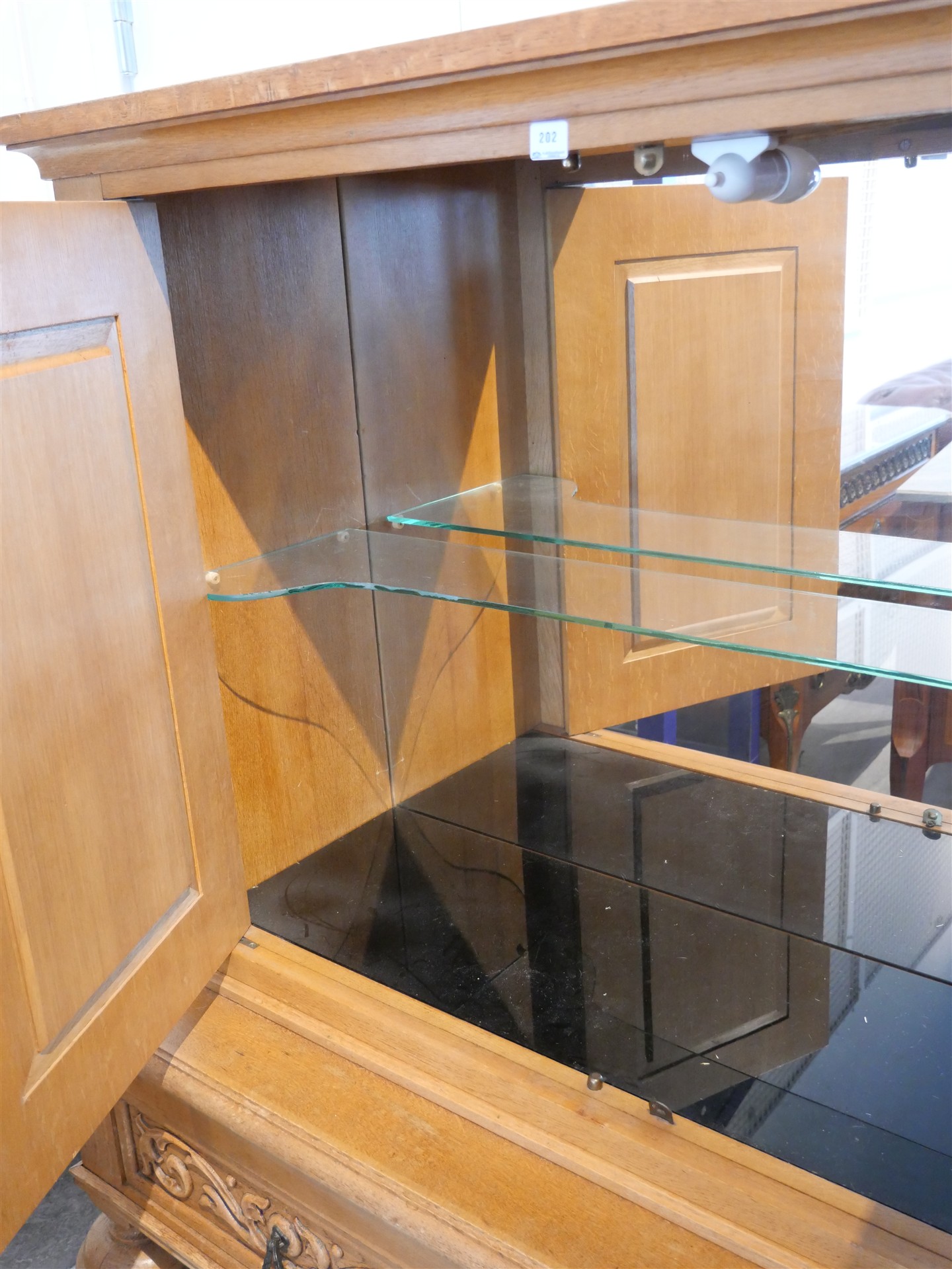 202. SKÅP, rikt skulpterat, ek, tvådelat, någon fanérskada. H 142 cm. B 124 cm. Dj 43 cm.