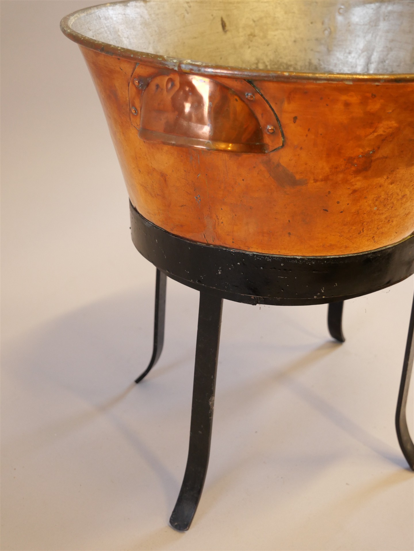230. KOPPARBALJA PÅ BENSTÄLLNING. H. 42 cm, 44x39 cm