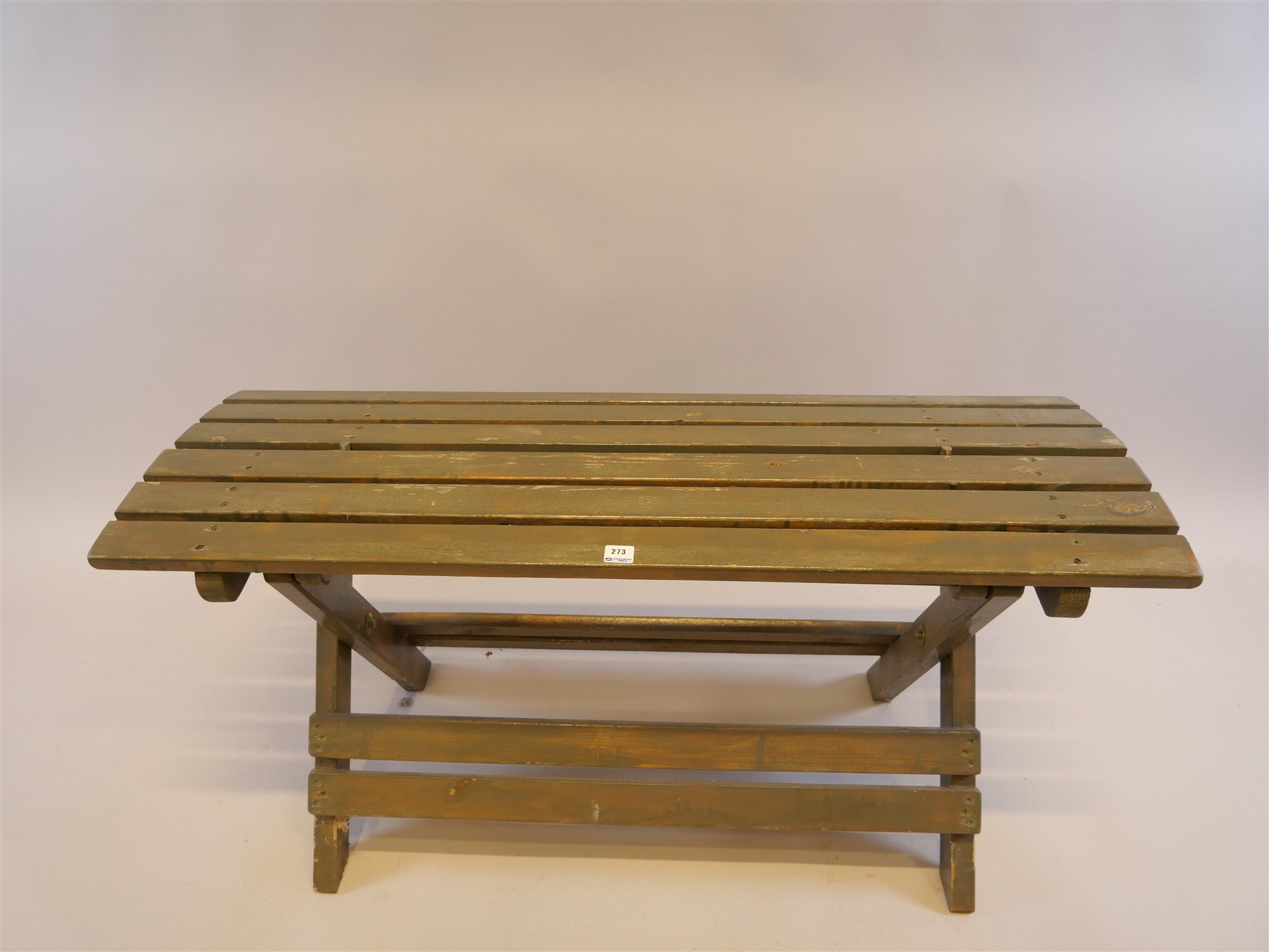 273. TRÄDGÅRDSBÄNK. Trä, Hopfällbar. H. 49 cm L. 100 cm B. 35 cm