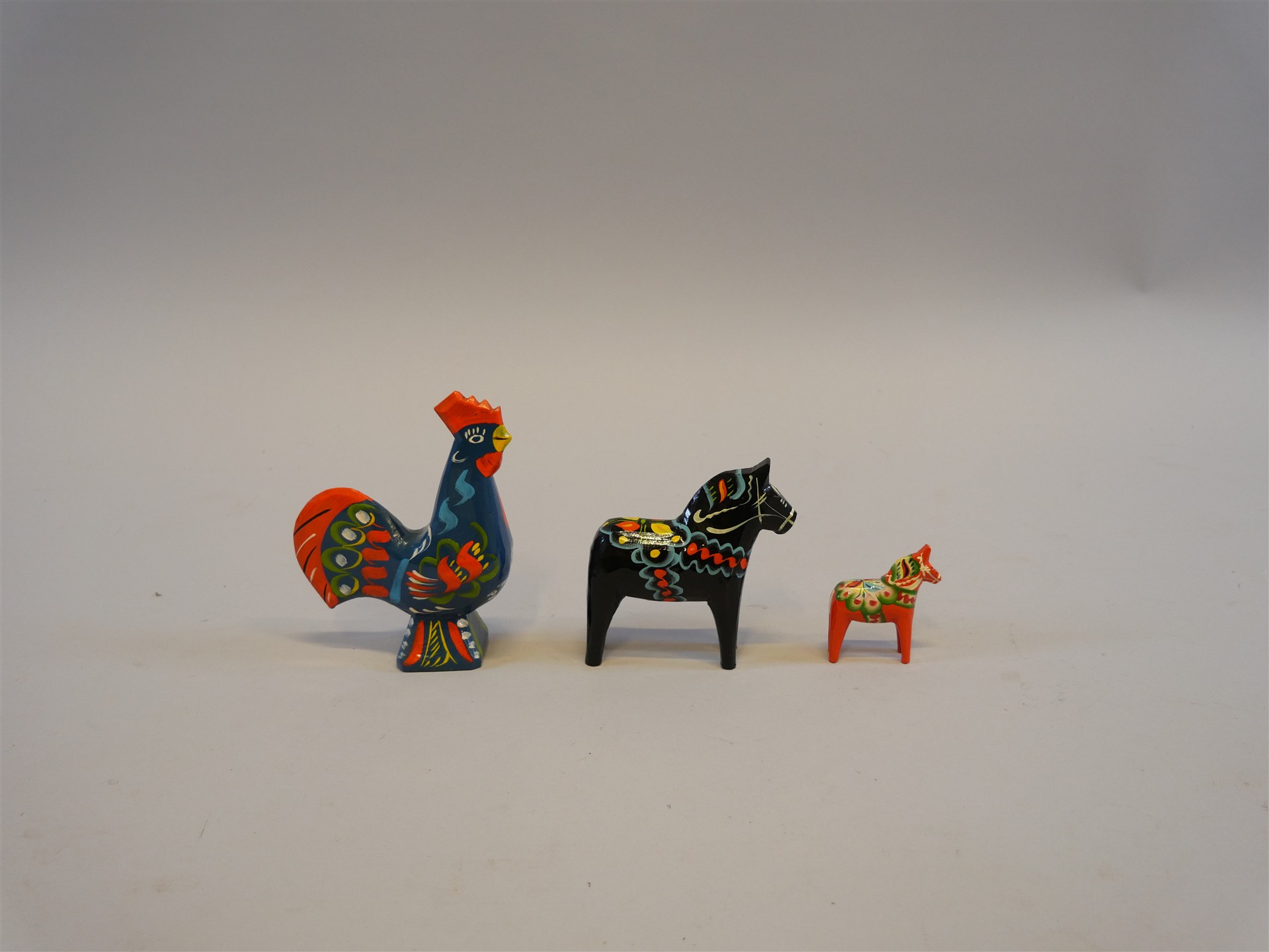 295. DALAHÄSTAR 2 st och Dalatupp. H. 7, 12.5 och 16 cm