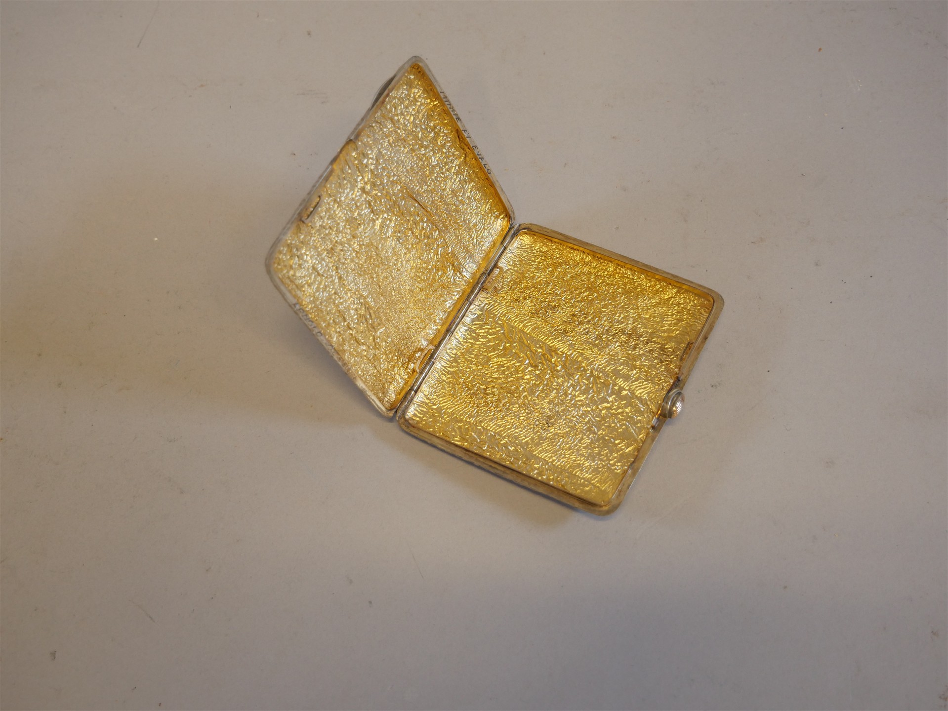 186. CIGARETTETUI. Silver, Finland. Kontr.S. m invändig förgyllning. Inskription på insidan på kanterna. 9,5 x 8,5 cm. Vikt 161 gram.