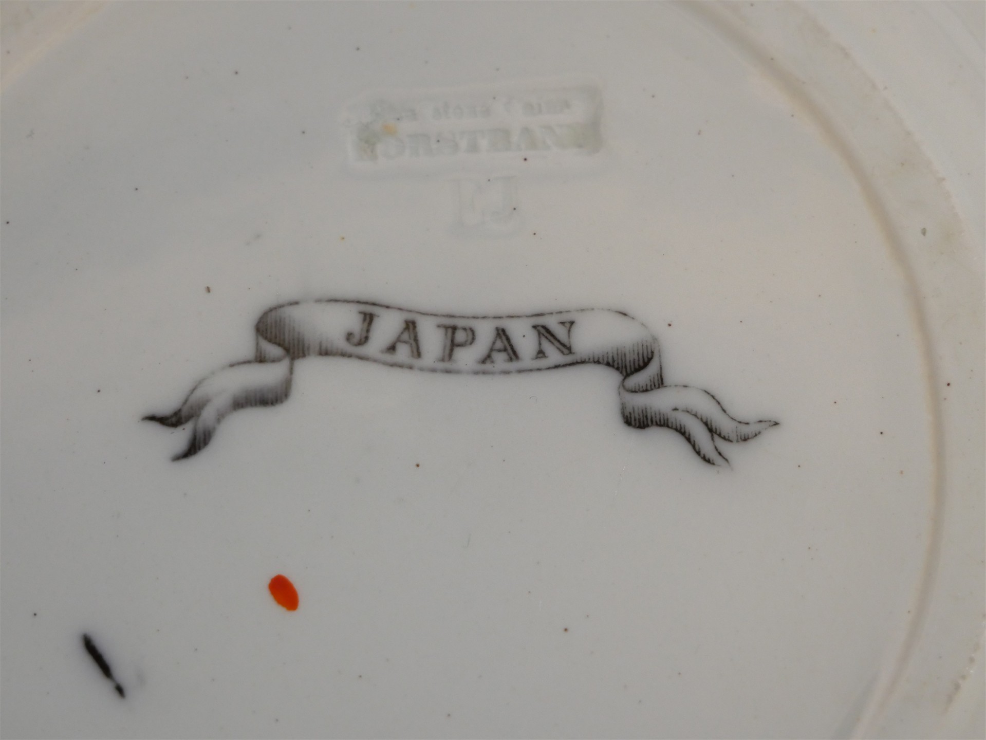 187. "JAPAN", RÖRSTRAND (rakstämpel). Assietter 2 olika modeller, 7 + 7 st. Diam. 14,5 cm. resp. 18 cm.