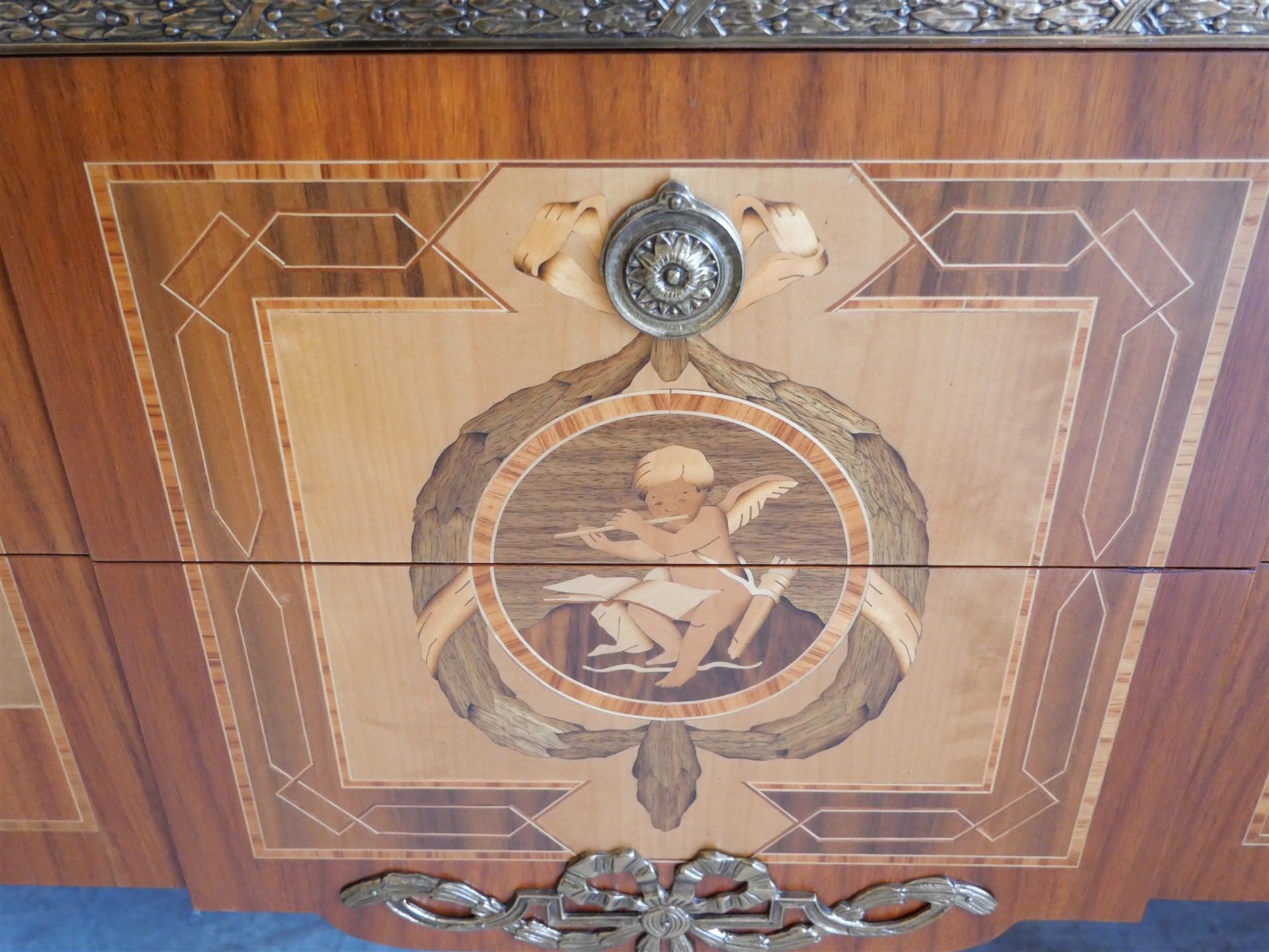 270. BYRÅ M MARMORSKIVA, INTARSIA. Gustaviansk stil. H. 82 cm. B. 112 cm. Djup 48 cm.
