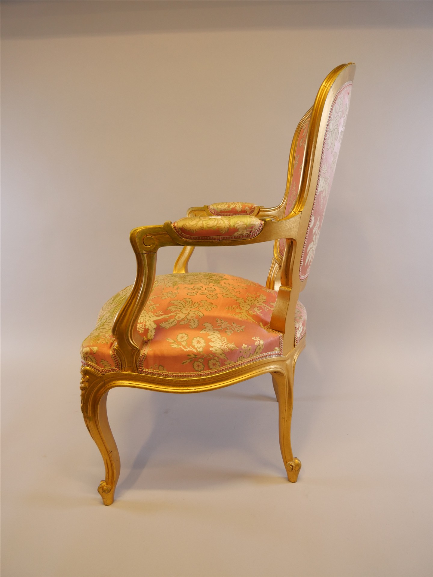 104. KARMSTOL, nyrokokostil. Tyget i sitsen slitet.