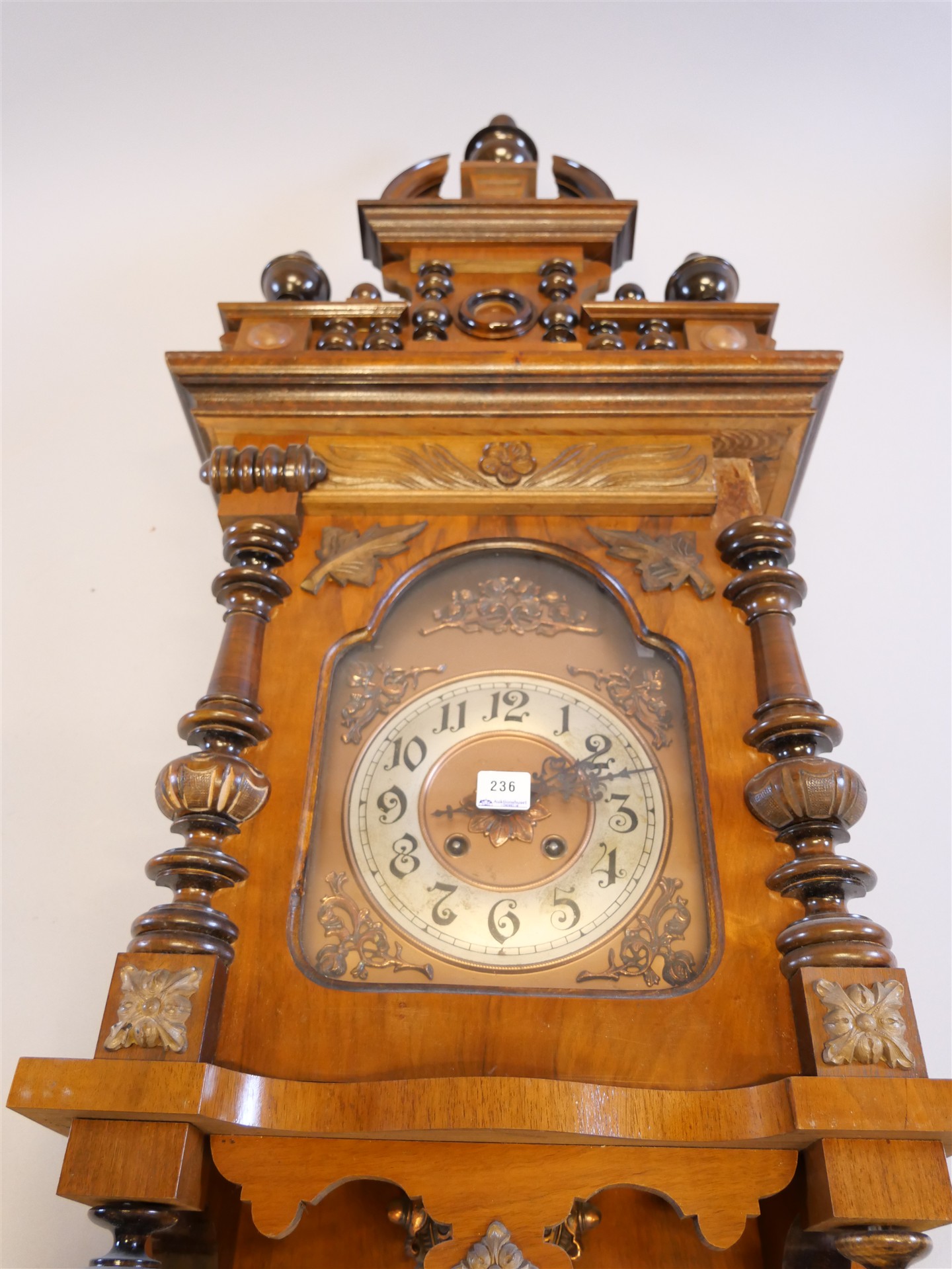 236. VÄGGKLOCKA, nyrenässans. H 108 cm.