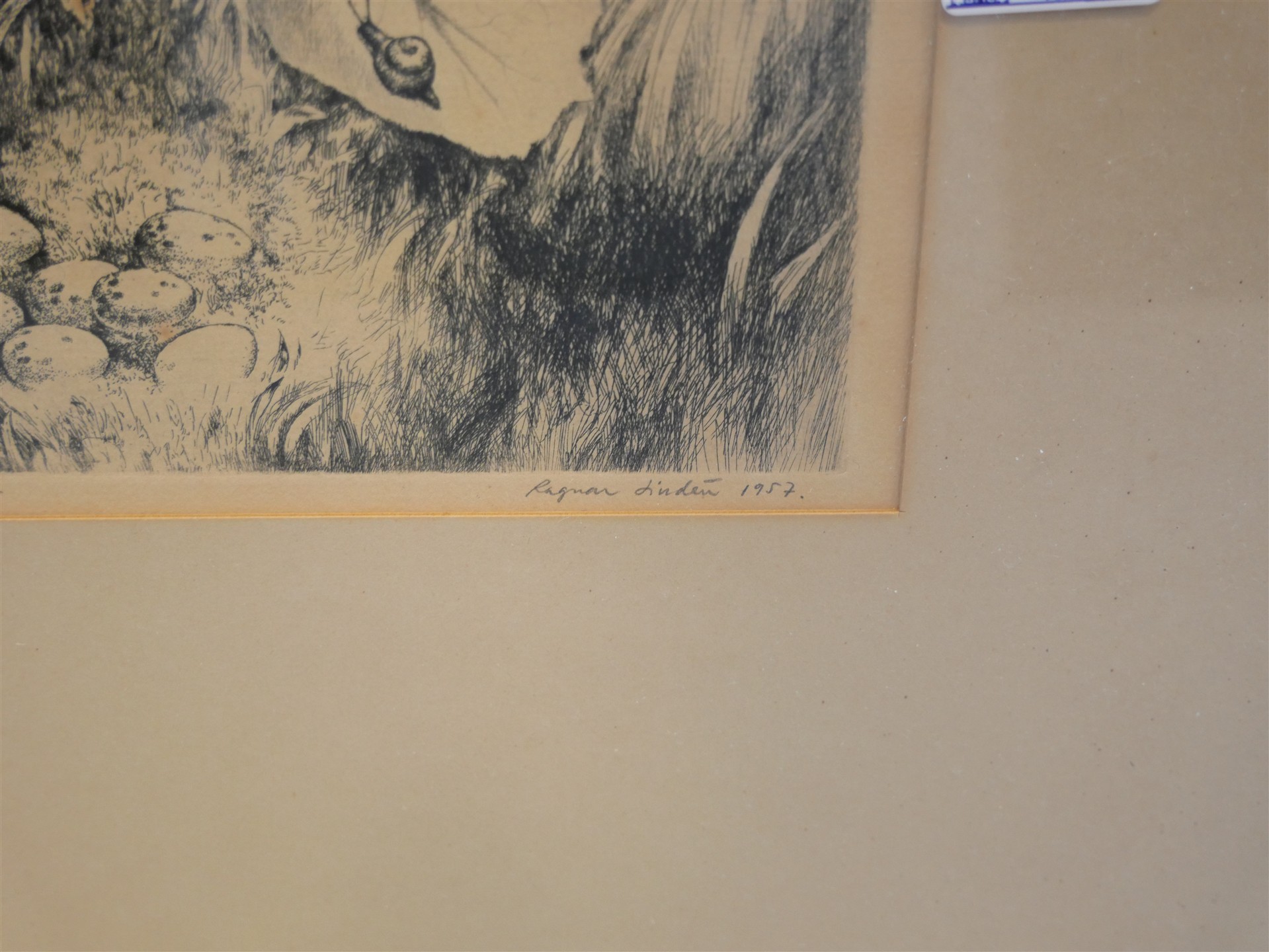 271. RAGNAR LINDÉN. Etsning, sign Ragnar Lindén 1957 "Fågeboett" 8/25. Bildmått 24,5 x 18,5 cm.