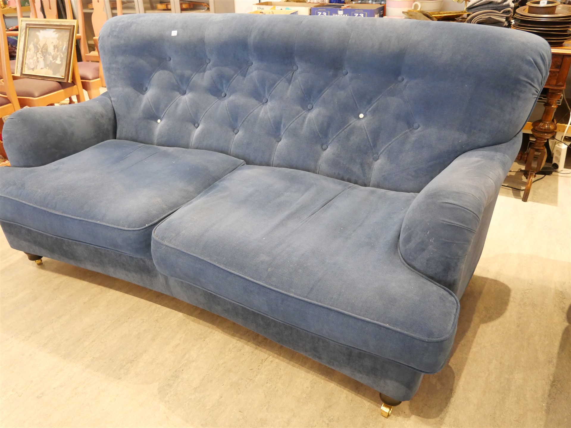 316. SOFFA. Howardmodell. 2-sits, (2 knappar saknas) L 187 cm.