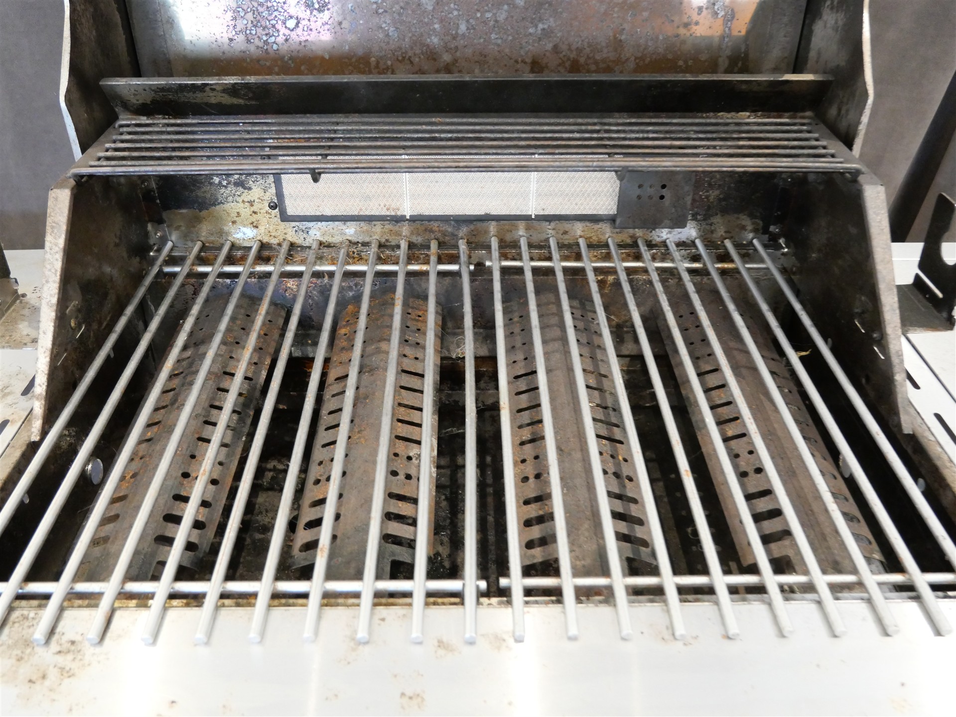330. GASOLGRILL, Metalcraft 6+1. Gjutjärnsgaller saknas. Bruksslitage. H 118 cm. B 142 cm. Dj 56,5 cm.