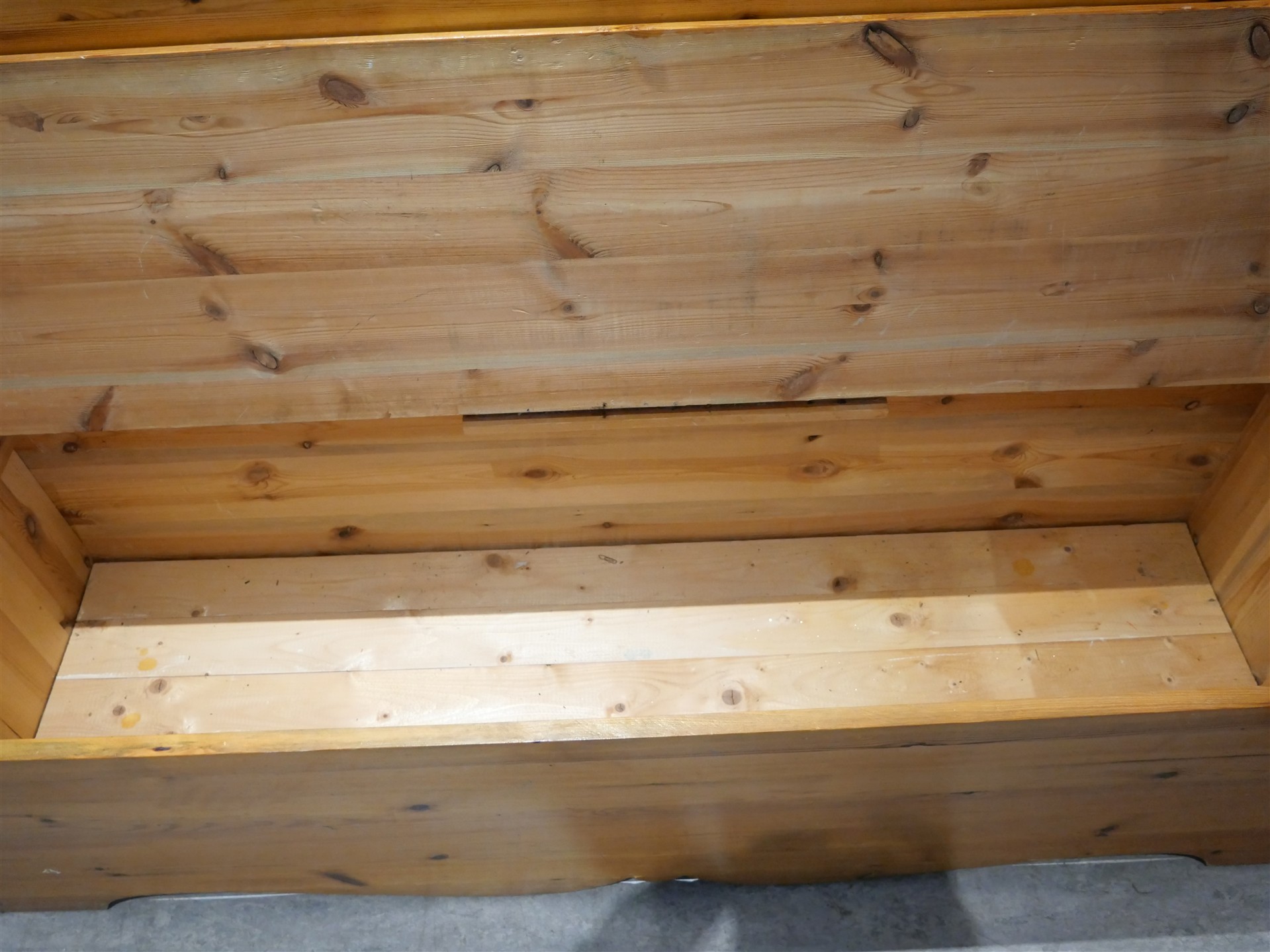 334. KÖKSSOFFA, furu med förvaring. H 88 cm. L 154 cm. Dj 47 cm.