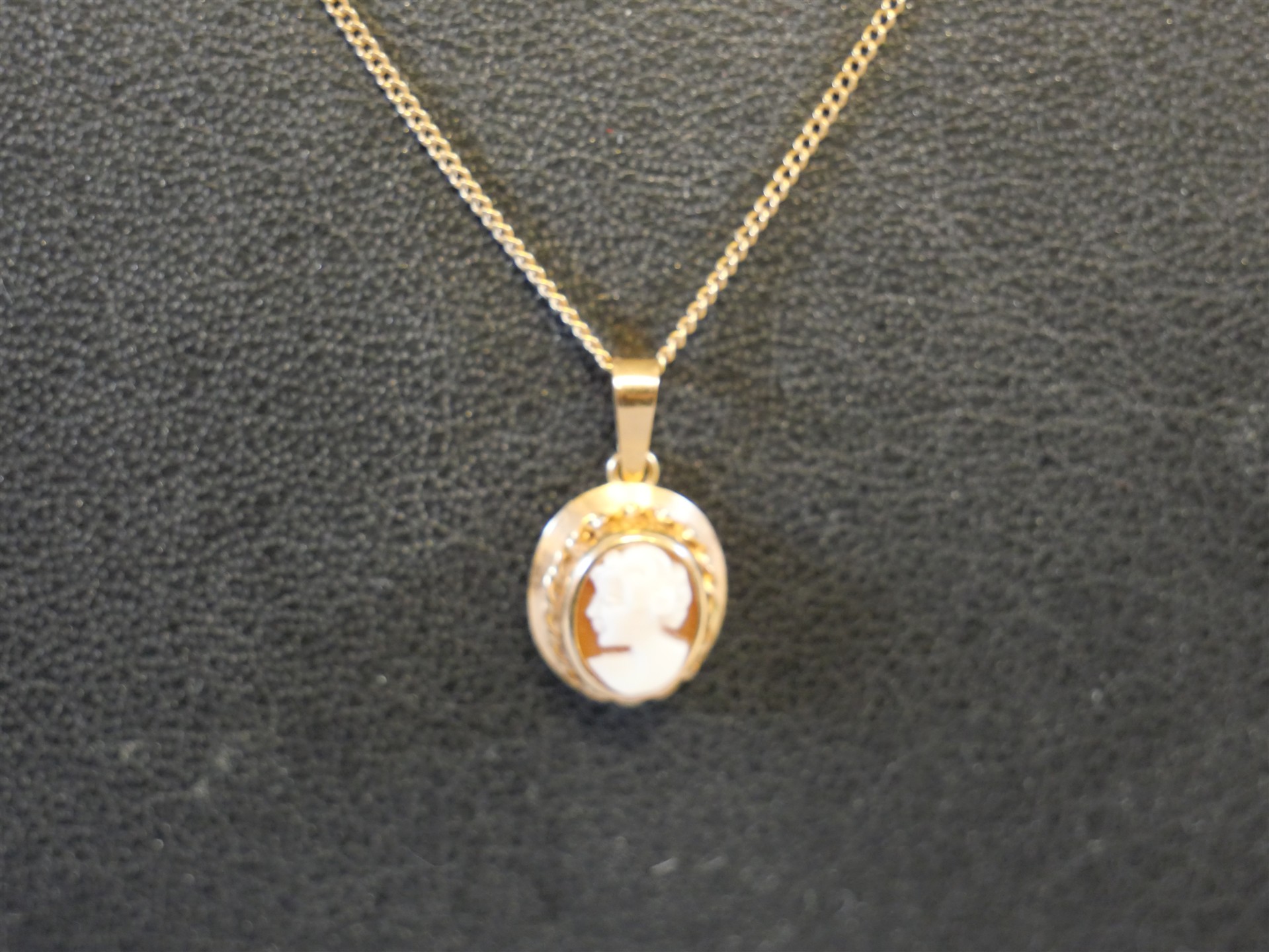 350. HALSBAND med camèhäng 18K. Längd 46 cm. Bruttovikt 3,6 gram.
