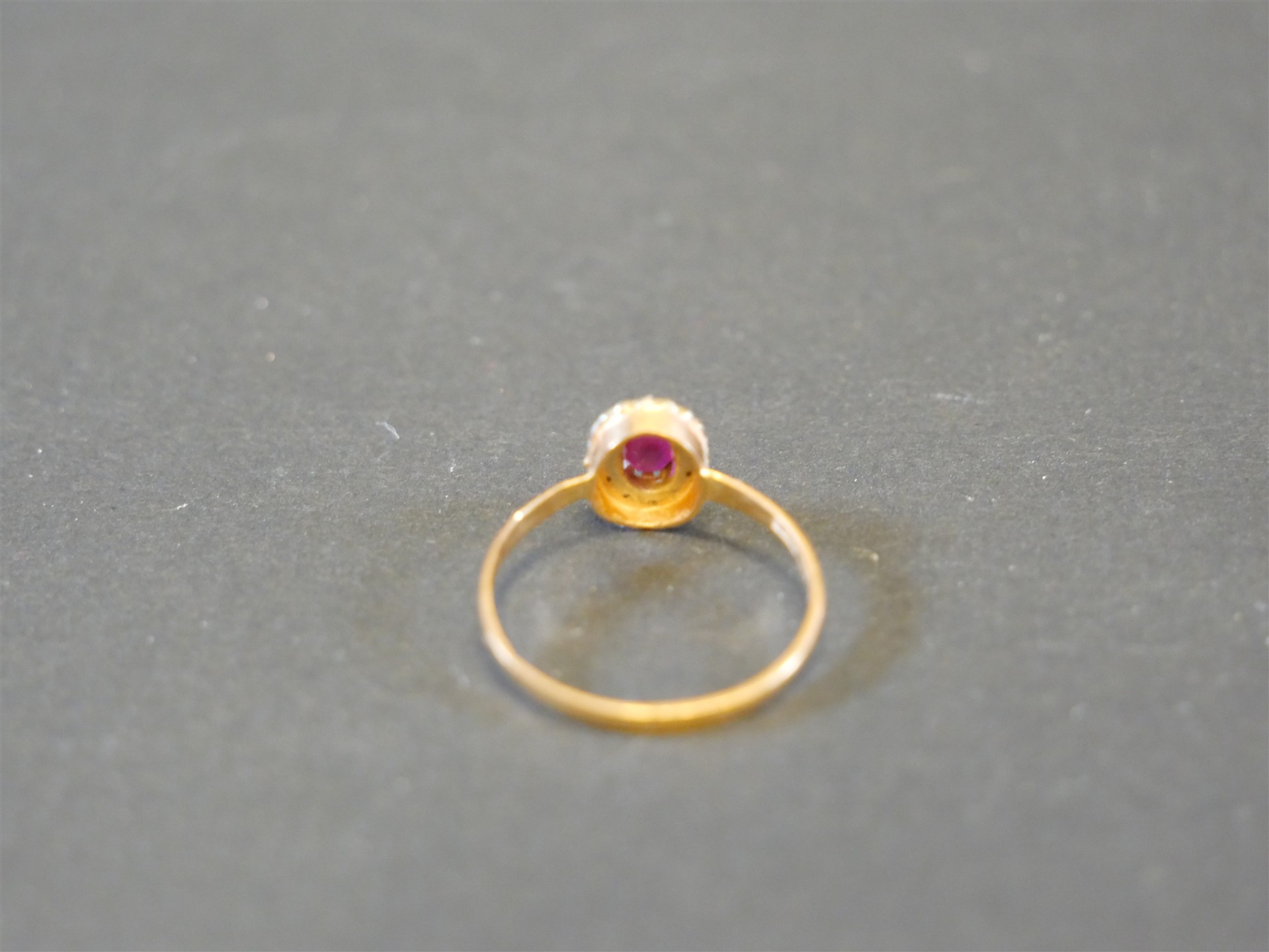 359. RING med stenar 18K. Ringens mått 15 mm. Några stenar saknas. Bruttovikt 1,1 gram.