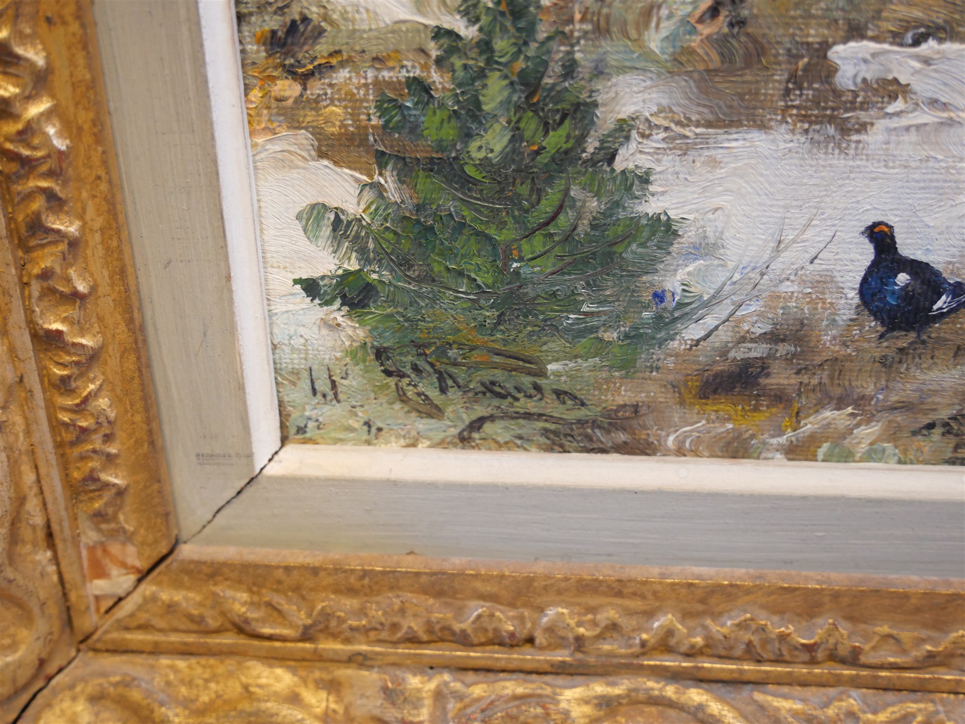 379. JOHANNES RAVN. Oljemålning, sign J Ravn, Duk 24 x 33 cm. Ram med skada.