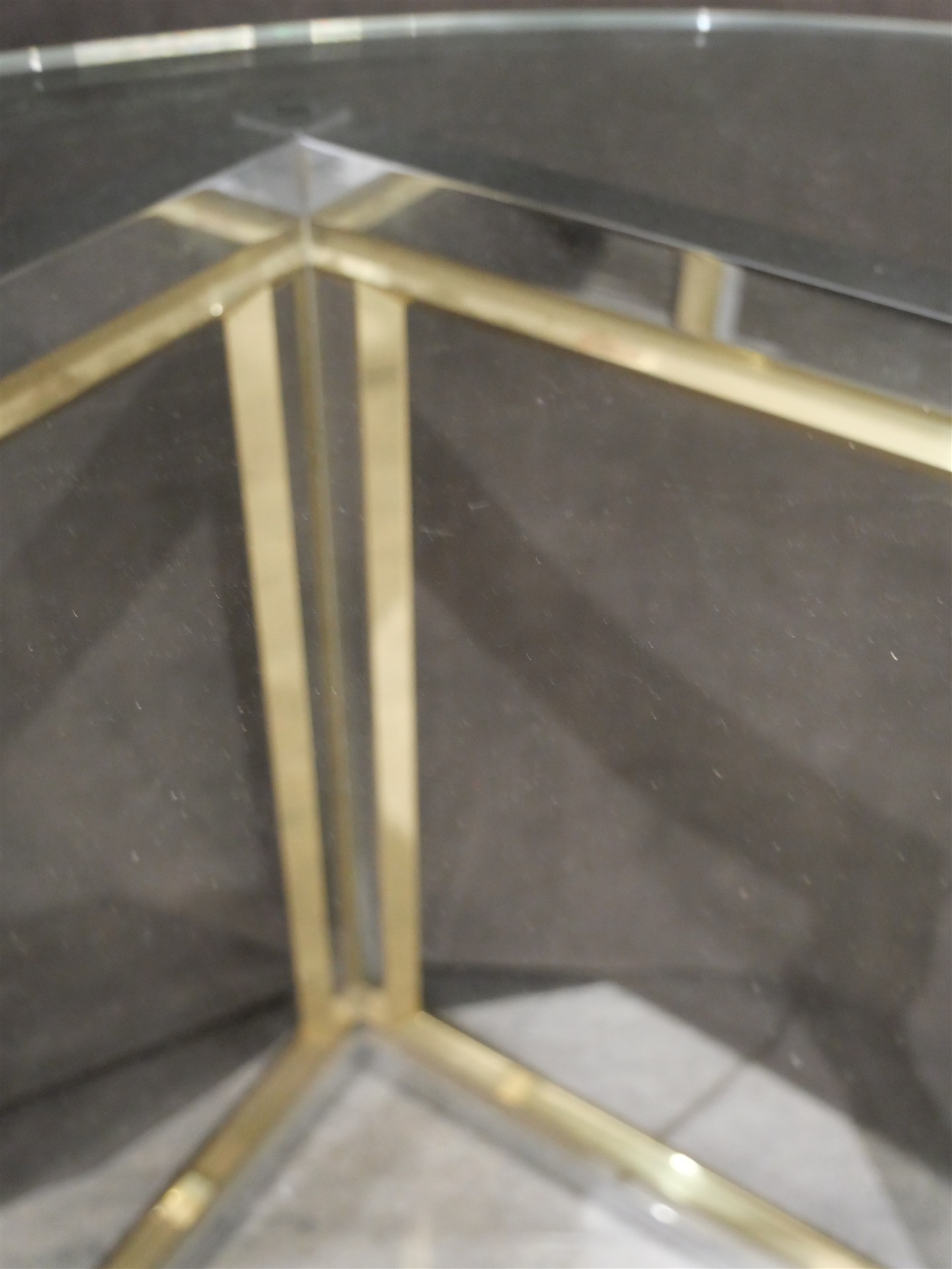 394. LAMPBORD, glas med metallunderrede. H. 51 cm. B. 70 cm. Djup 50 cm.