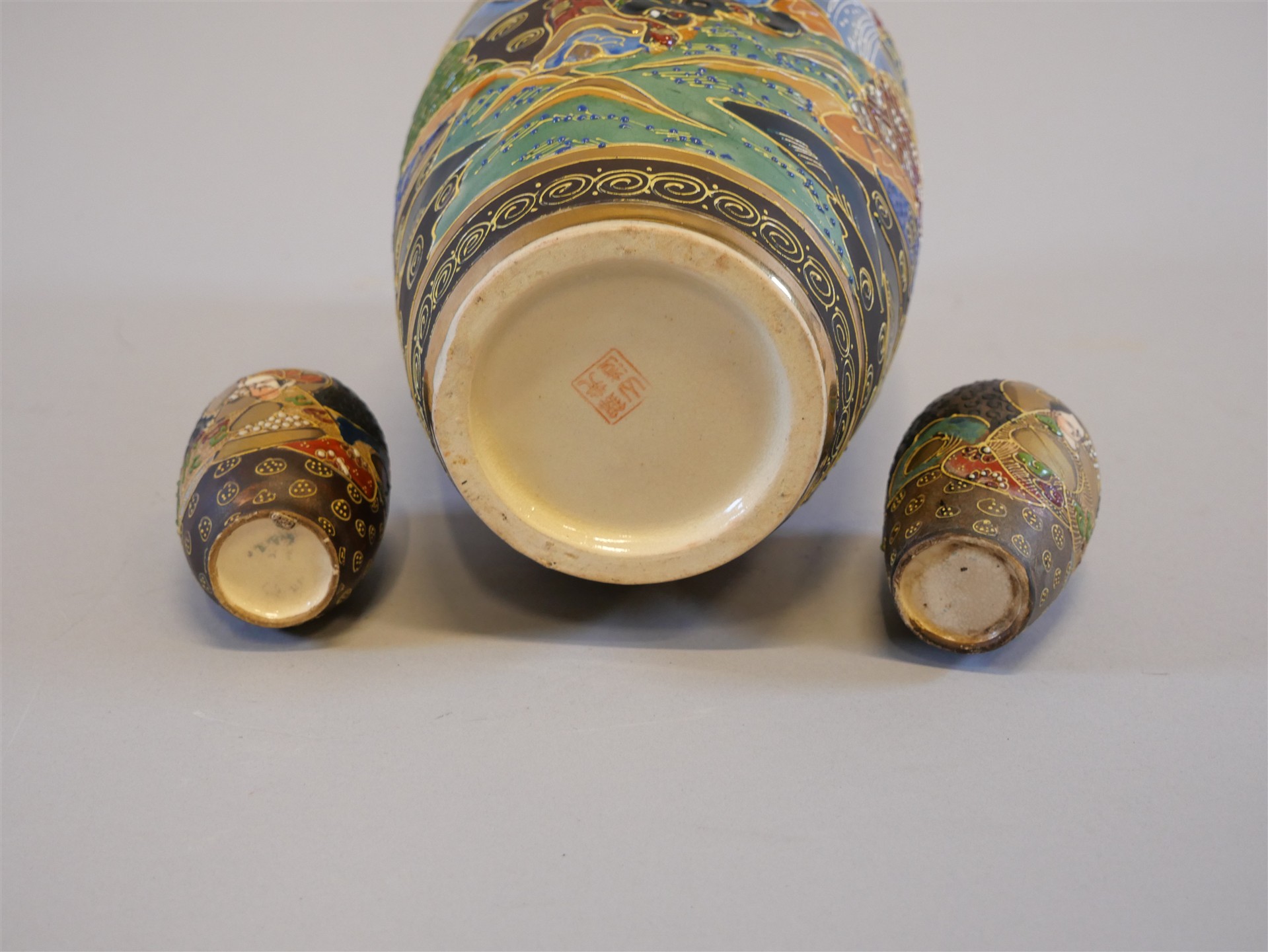 093. SATSUMA. Vaser 3 st. H 8 resp 25,5 cm.