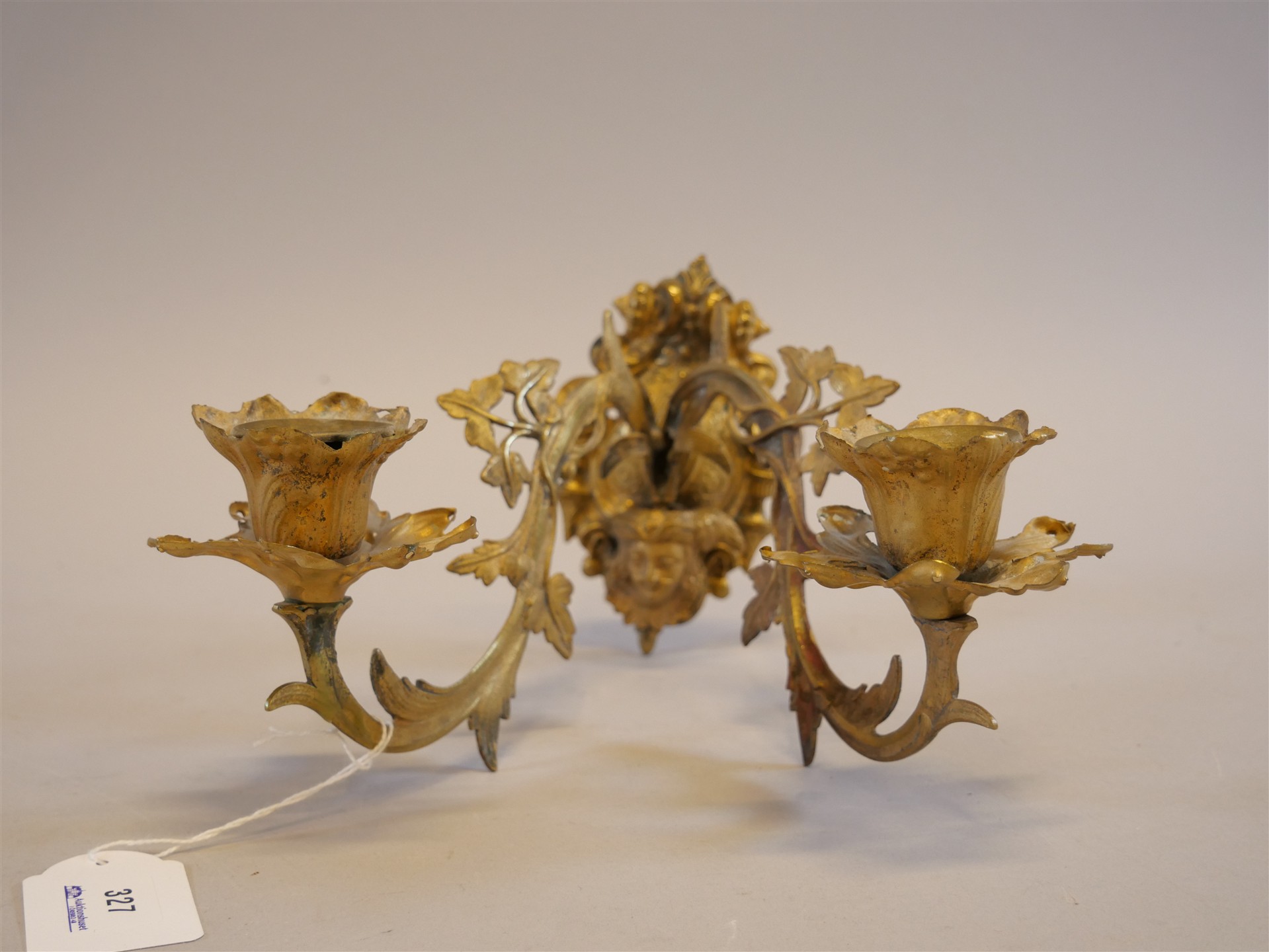 327. VÄGGLAMPETT, 2-armad, gulmetall. Sekelskiftet 1900. H. 14,5 cm. Djup 22 cm.