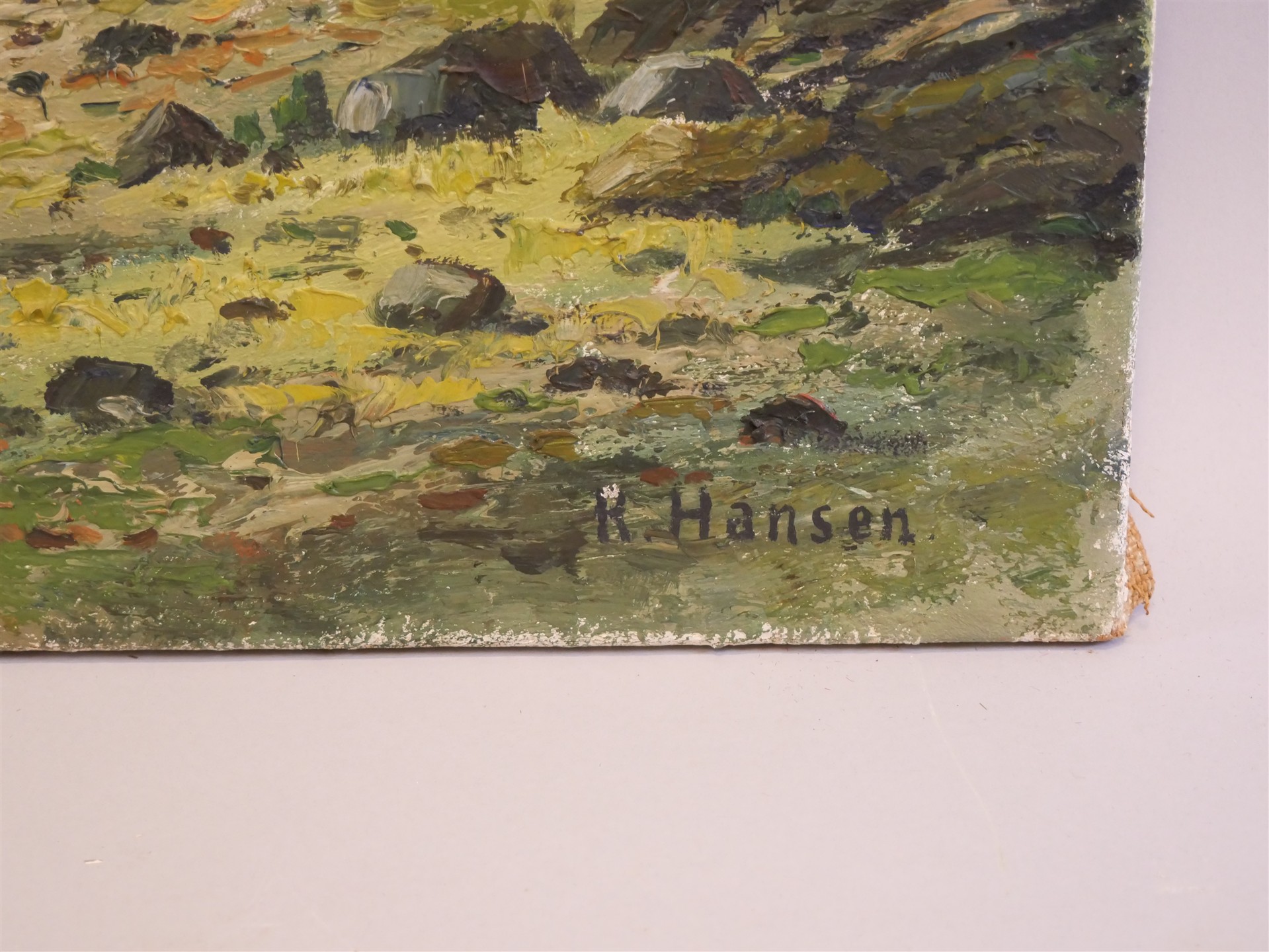 447. K. HANSEN. Oljemålning. Duk. 81 x 121 cm.