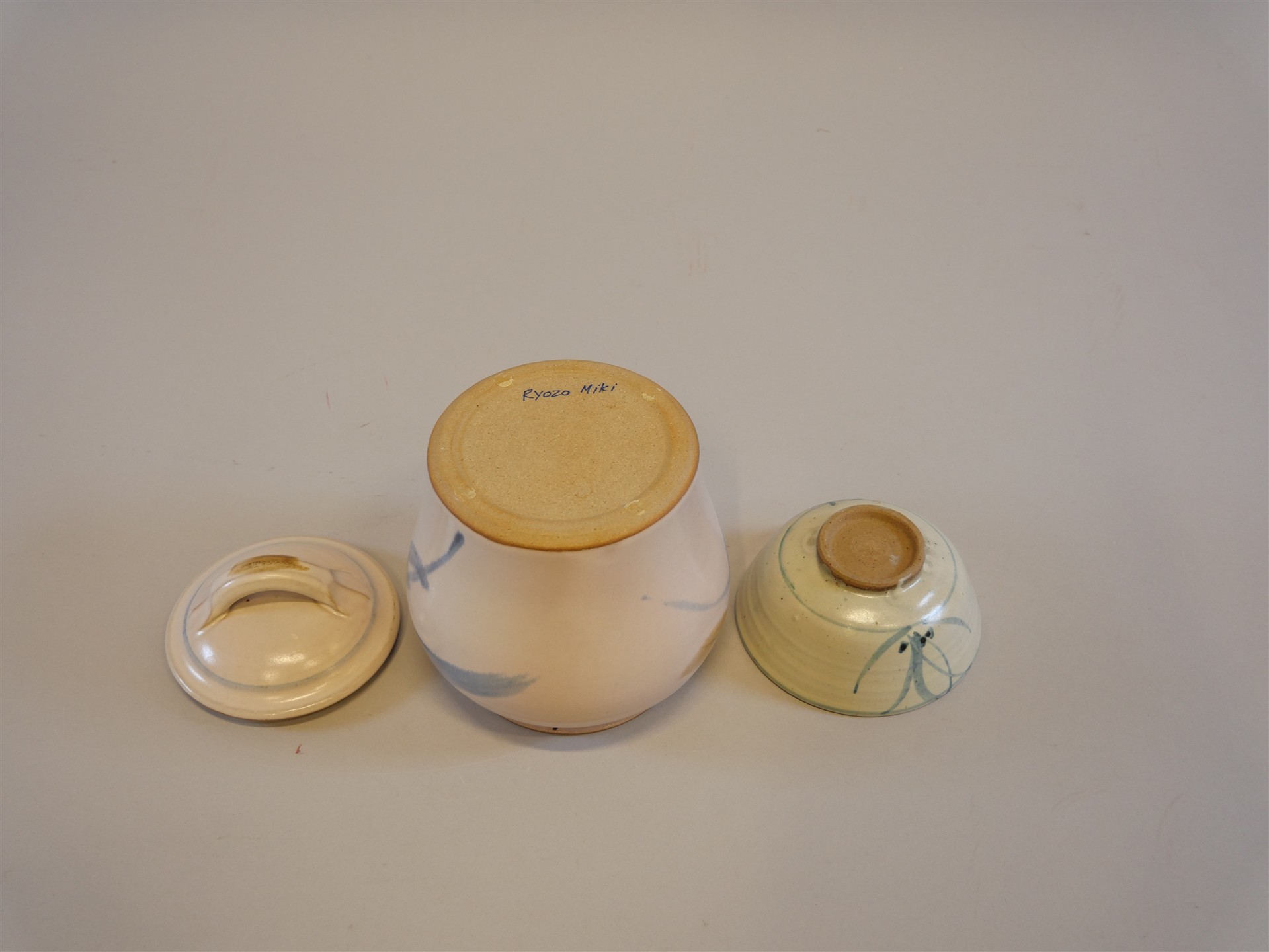 201. LOCKURNA Ryozo Miki (urnan har en kantnagg), skål, keramik. H. 18,5 cm. resp 5,5 cm.