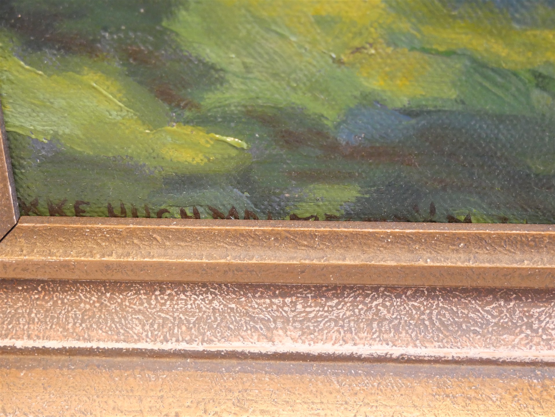 215. OLJEMÅLNING. Otydbar sign. Duk 43 x 40 cm.