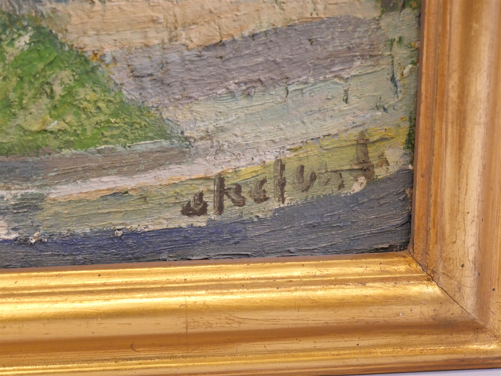 217. OLJEMÅLNING, otydbar signatur. Pannå. Tavlans mått 56,5, x 77 cm.
